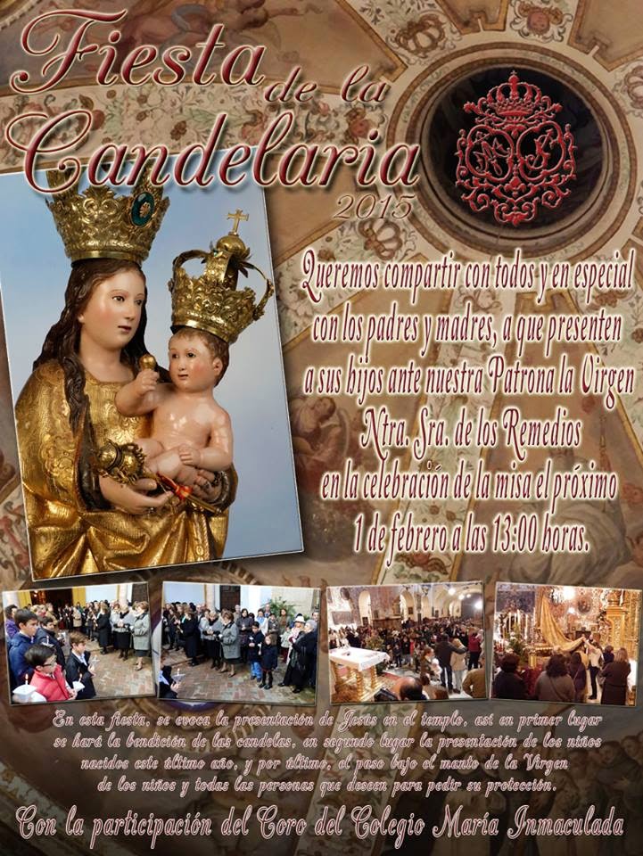 La Esclavitud de Nuestra Señora de los Remedios, Patrona de Antequera, celebrará este próximo domingo la Fiesta de la Candelaria en su Santuario. En esta fiesta en la que se evoca la presentación de Jesús en el templo, invitan en especial a todas las madres y padres para que presenten a sus hijos ante la Patrona Mariana de la ciudad durante la celebración de la Santa Misa que tendrá lugar a partir de las una de la tarde.