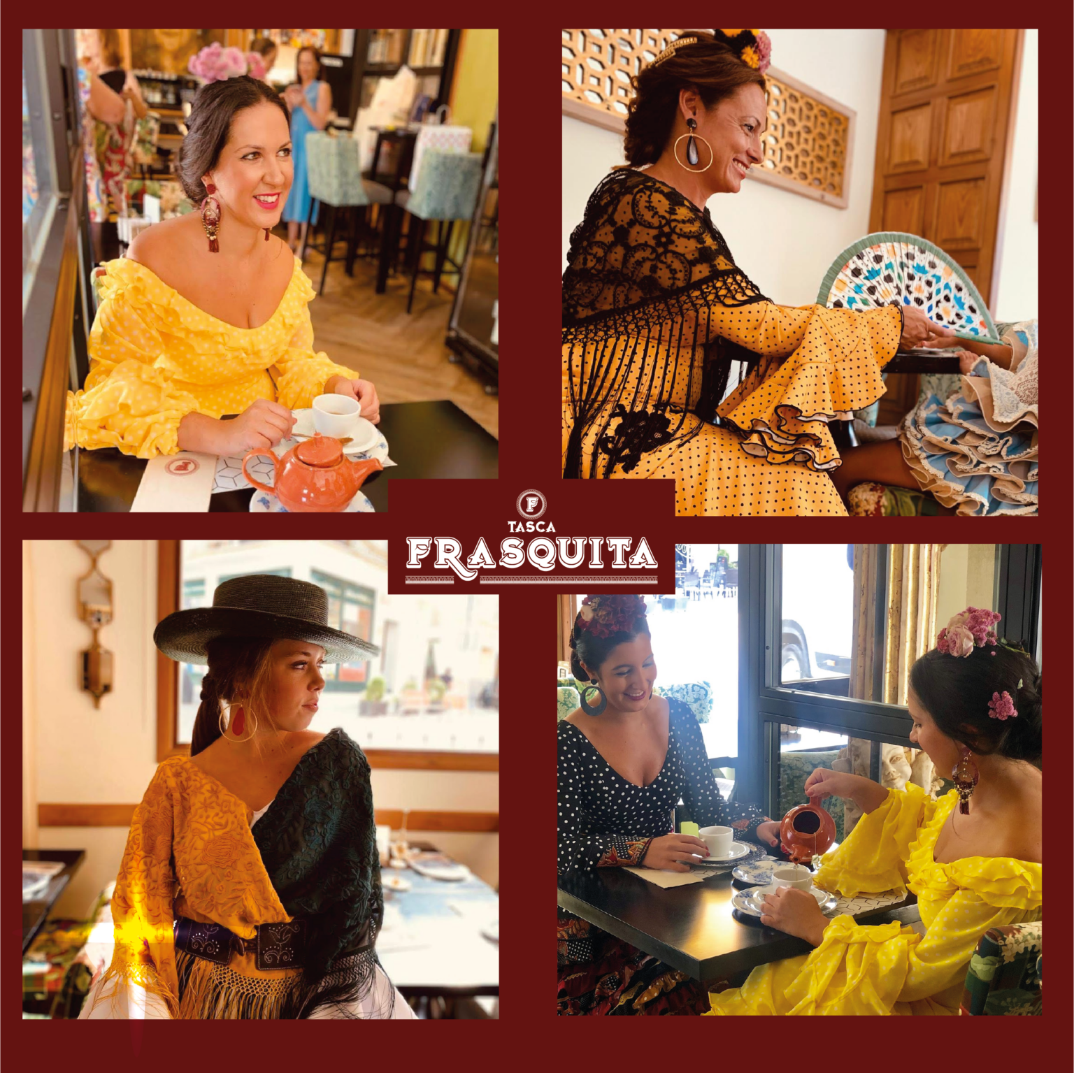 Realizamos una divertida sesión de fotos “flamencas a la hora del té”, donde mezclamos los elegantes trajes de Patro Flamenca, con la original decoración de Tasca Frasquita y las manos de Laima con la cámara para crear un brillante trabajo.