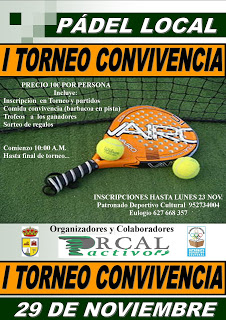 El domingo 29 de noviembre, a las diez de la mañana, arrancará el ‘I Torneo Convivencia de Pádel Local’ en Villanueva de la Concepción, organizado por el Ayuntamiento en colaboración con Torcal Activo.
