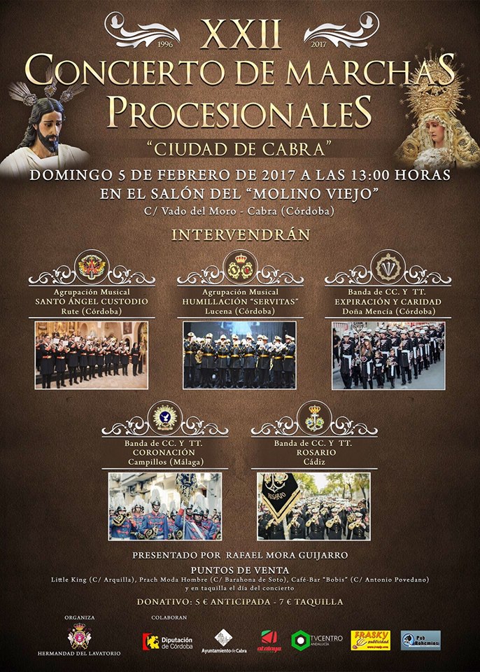 Se trata de un concierto organizado por la Hermandad del Lavatorio de Cabra, Córdoba.