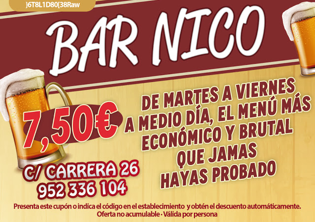 Cupón | De martes a viernes a medio día, menú por 7,50 € en Bar Nico