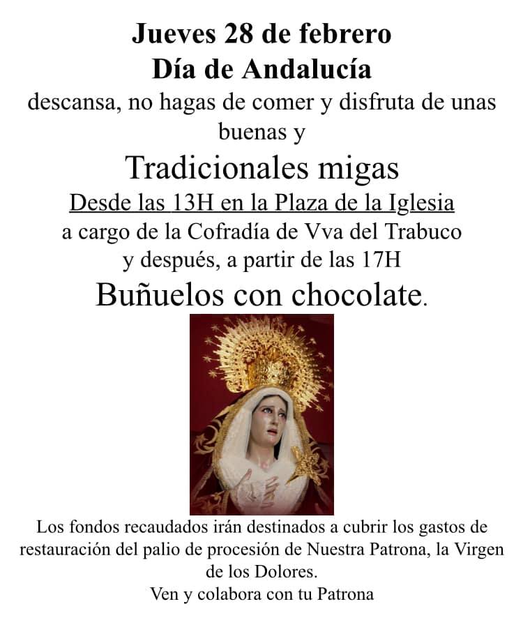 La Cofradía de Nuestra Señora de los Dolores de Villanueva del Trabuco organiza este jueves 28 de febrero, día de Andalucía, sus tradicionales migas.