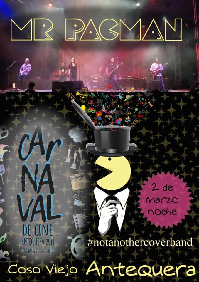 El grupo antequerano Mr. Pacman ha confirmado en sus redes sociales que actuarán en la noche del 2 de marzo en la celebración del Carnaval de Antequera que este año cambia de ubicación y pasa a celebrarse en la plaza del Coso Viejo.