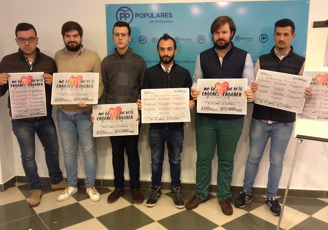 «No te engañes. Que no te engañen». Este es el mensaje de la campaña que Nuevas Generaciones ha presentado este martes en Antequera y puesta en marcha estos días con motivo de la conmemoración del Día Internacional de la Eliminación de la Violencia contra la Mujer el próximo 25 de noviembre, con la que quieren concienciar sobre el peligro en las conductas de control que adoptan alguno jóvenes con sus parejas.