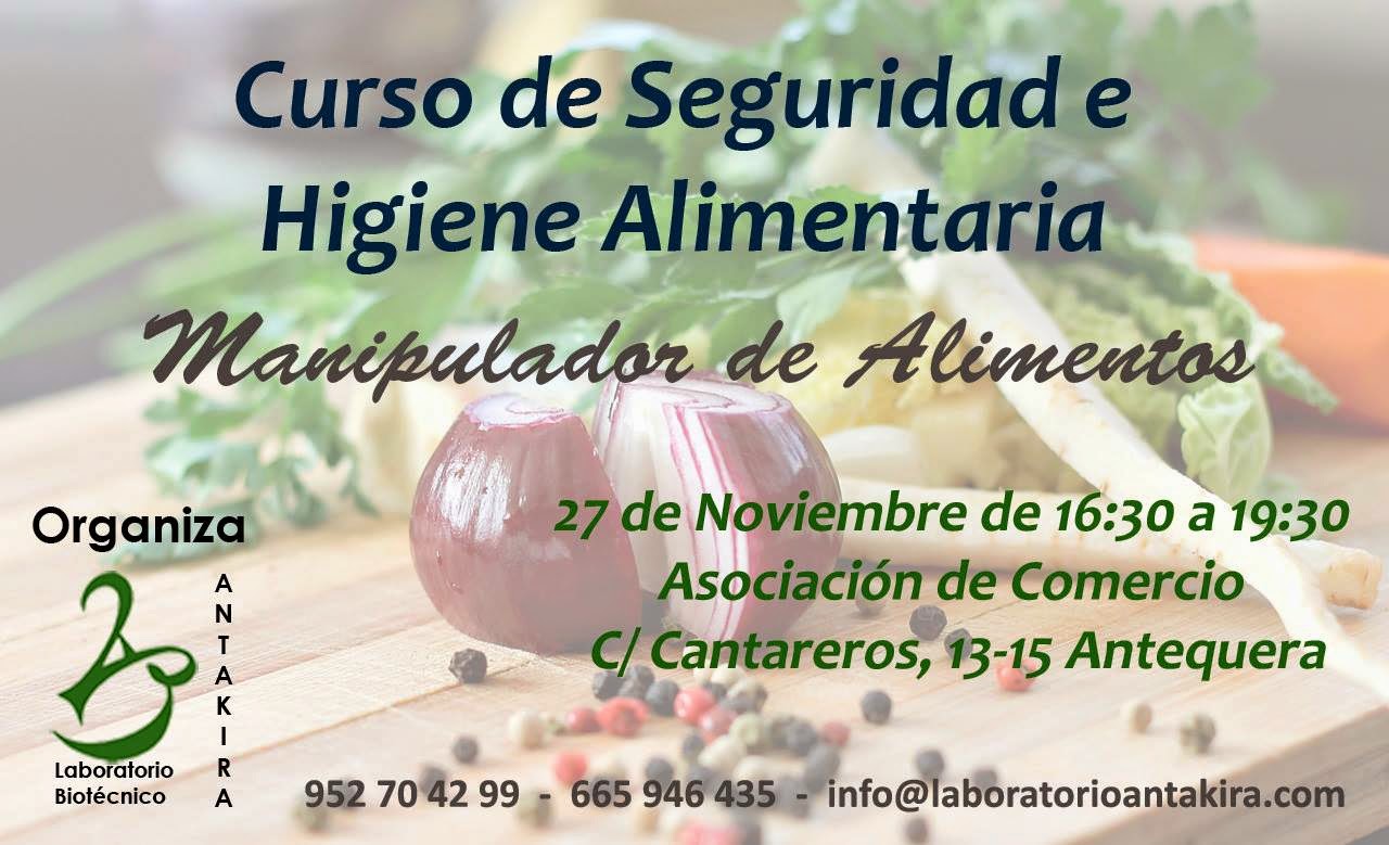 Nuevo curso de manipulador de alimentos en la ACIA el día 27 de noviembre organizado por Laboratorio Antakira