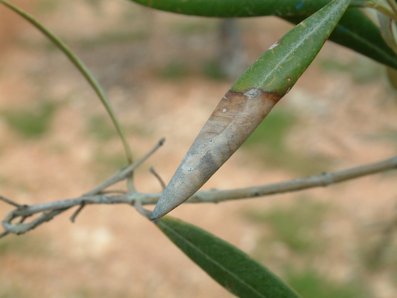 - El segundo pilar consiste en la lucha química por medio de funguicidas a base de cobre, que al depositarse en la superficie de las hojas, impiden la germinación de la conidias y las futuras infecciones. El momento óptimo de tratamiento sería final de verano o principios de otoño y final de invierno. En variedades sensibles, como son Marteño y Hojiblanco y en zonas endémicas es muy recomendable tratar antes de que se produzcan las lluvias y es eficaz el tratamiento en primavera, que es un momento crítico para la infección.
