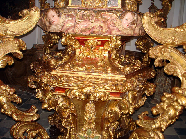 La concejal delegada del Área de Patrimonio Histórico del Ayuntamiento de Antequera, Eugenia Acedo, informa de la conclusión de los trabajos de restauración de la peana sobre la que la Virgen del Rosario se asienta en su camarín de la basílica de Santo Domingo. El proceso de restauración comenzaba con la realización de una fijación del estrato de preparación en zonas periféricas de las lagunas donde ha habido desprendimiento y en los bordes que presentaban levantamientos con falta de adherencia al soporte de madera. Posteriormente se ha realizado una limpieza mecánica de la cera, finalizando con limpieza físico-química en toda la superficie del conjunto de madera dorada. Este proceso ha incluido las seis cabezas de ángeles policromadas que adornan la nube sobre la que apoya la talla de la Virgen. Por último, se ha protegido con barniz extrafino para tablas la superficie total del conjunto intervenido.