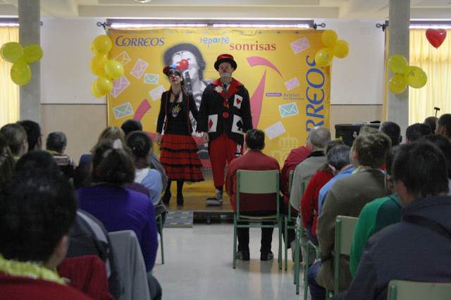 La Asociación de Discapacitados Psíquicos de Antequera (ADIPA) se ha llenado esta mañana con las risas de más de 150 usuarios que han formado parte del espectáculo de los payasos-magos Luigi y Lola Mento. Este espectáculo se hace gracias al programa ‘Correos Reparte Sonrisas’ y a la ONG ‘Payasos Sin Fronteras’.