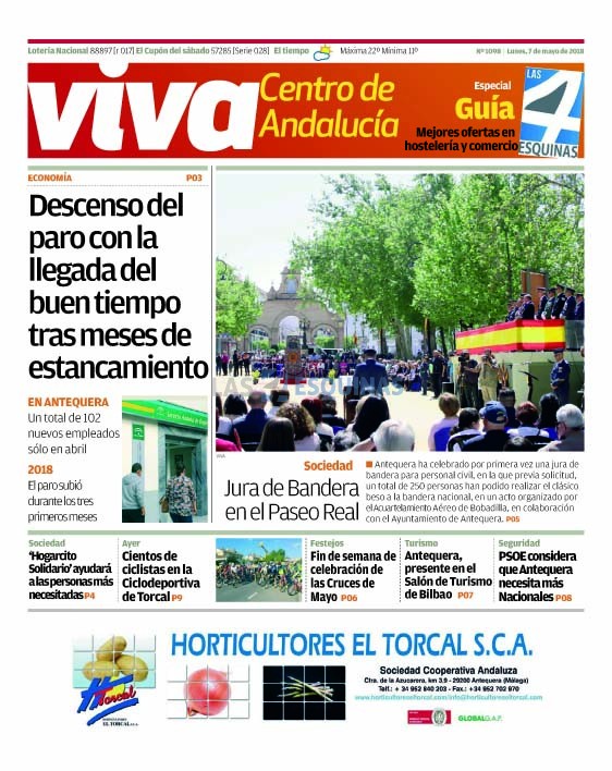 Antequera ha celebrado por primera vez una jura de bandera para personal civil, en la que previa solicitus, un total de 250 personas han podido realizar el clásico beso a la bandera nacional, en un acto organizado por el Acuertelamiento Aéreo de Bobadilla, en colaboración con el Ayuntamiento de Antequera.