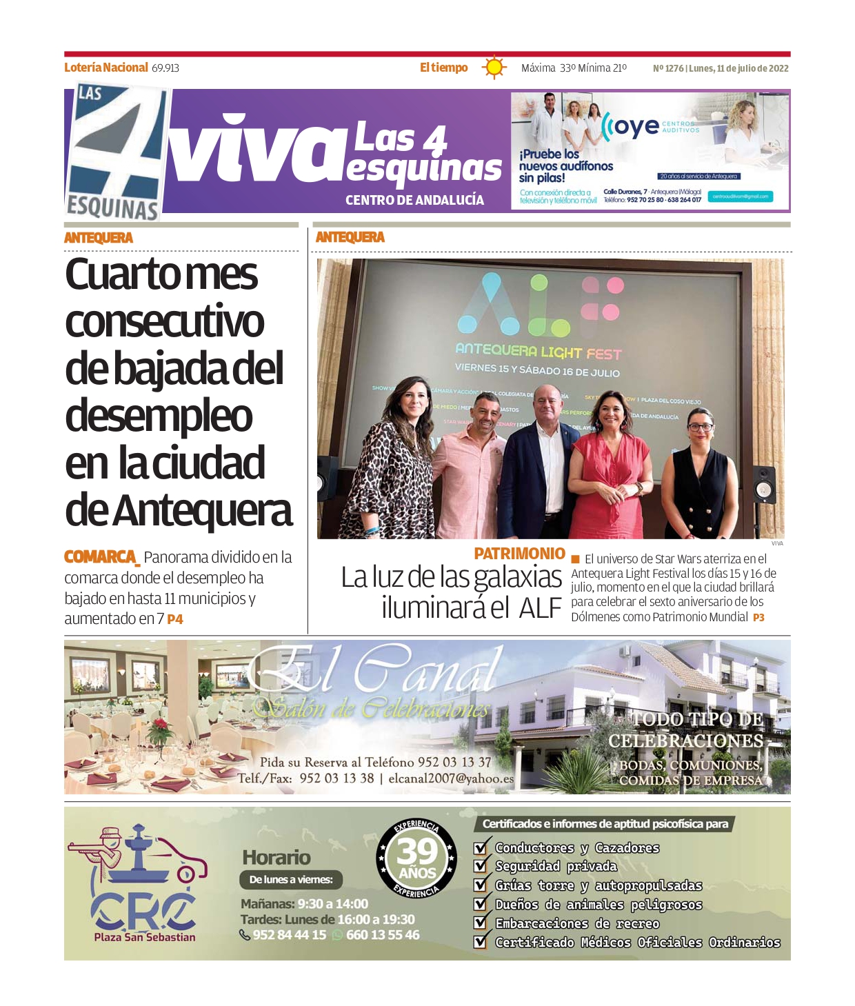 Periódico | VIVA Las 4 Esquinas 11 julio – Cuarto mes consecutivo de bajada del desempleo en la ciudad de Antequera