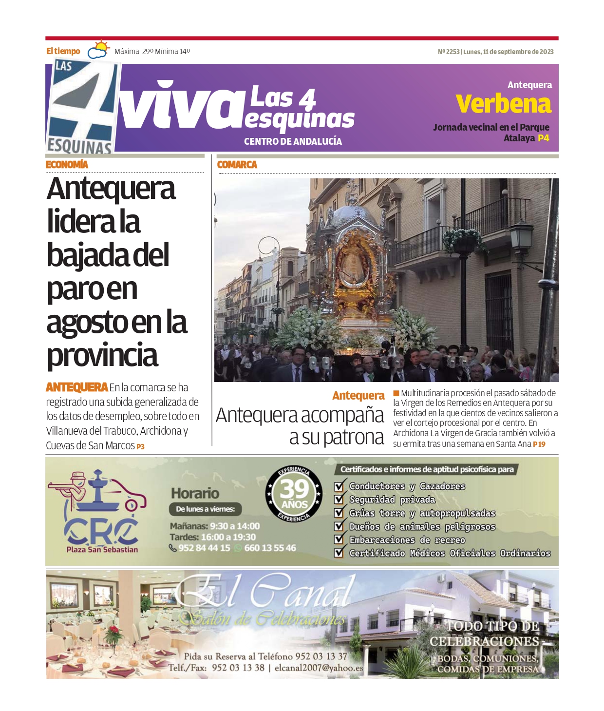 Periódico | VIVA Las 4 Esquinas 11 septiembre – Antequera lidera la bajada del paro en agosto en la provincia