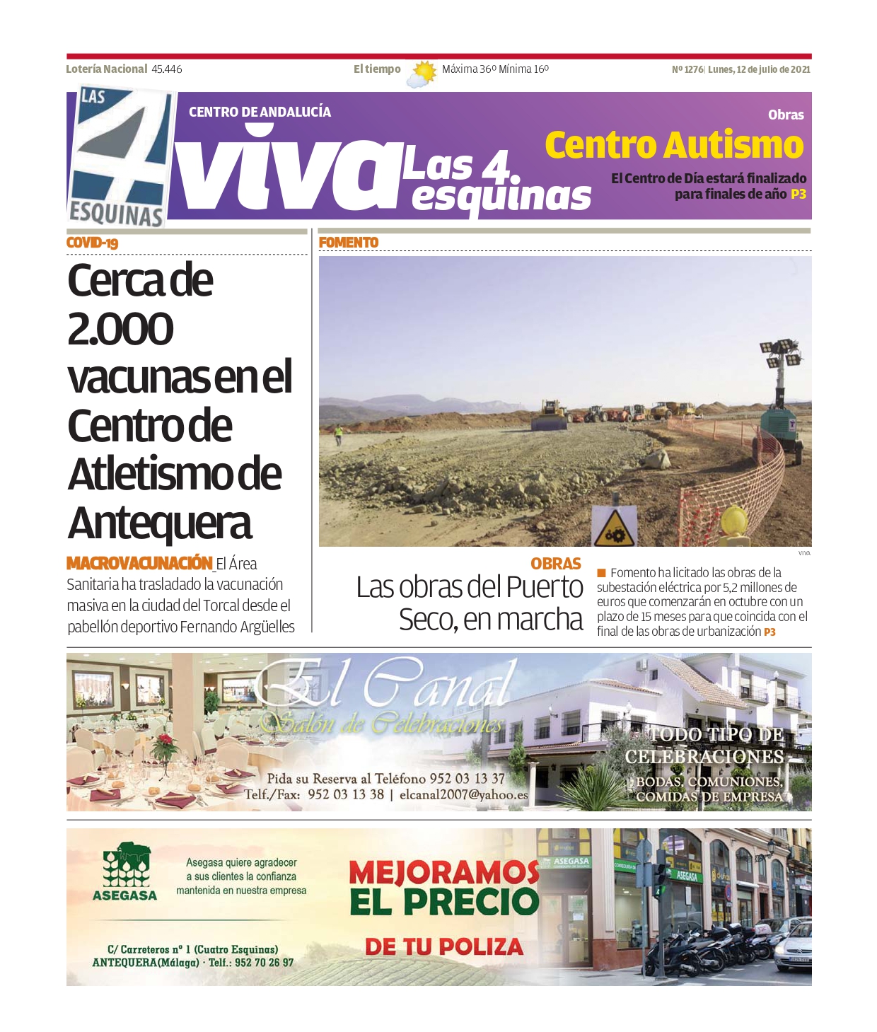 Periódico | VIVA Las 4 Esquinas 12 de julio – Cerca de 2.000 vacunas en el Centro de Atletismo de Antequera