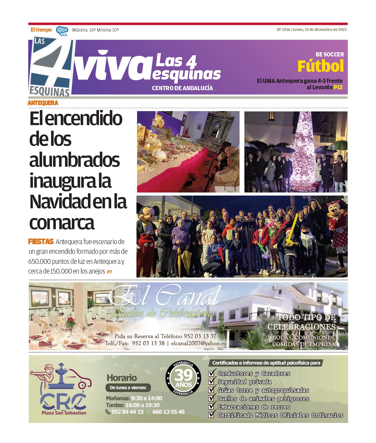 Periódico | VIVA Las 4 Esquinas 12 diciembre – El encendido de los alumbrados inaugura la Navidad en la comarca