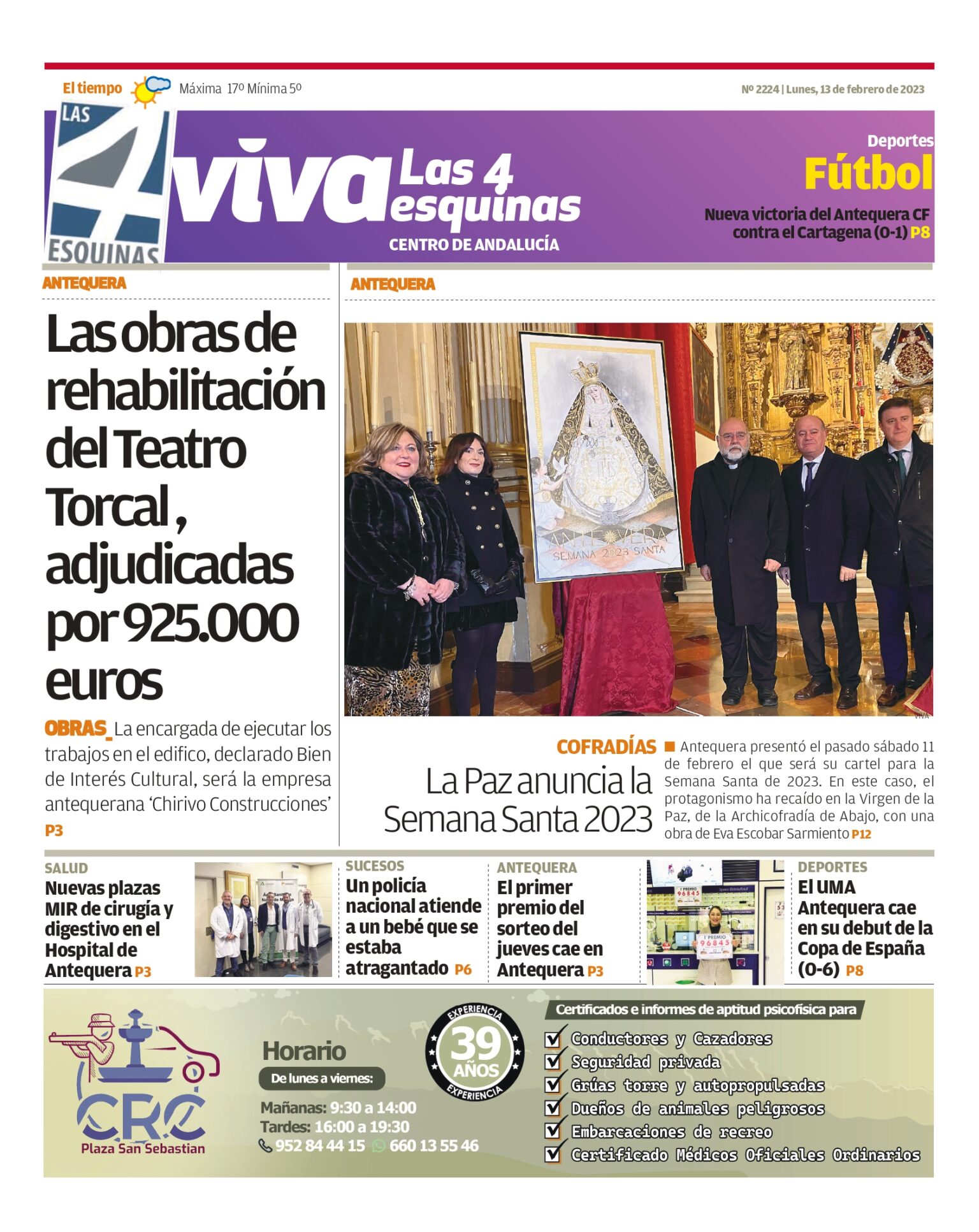 Periódico | VIVA Las 4 Esquinas 13 febrero – Las obras de rehabilitación del Teatro Torcal, adjudicadas por 925.000 euros
