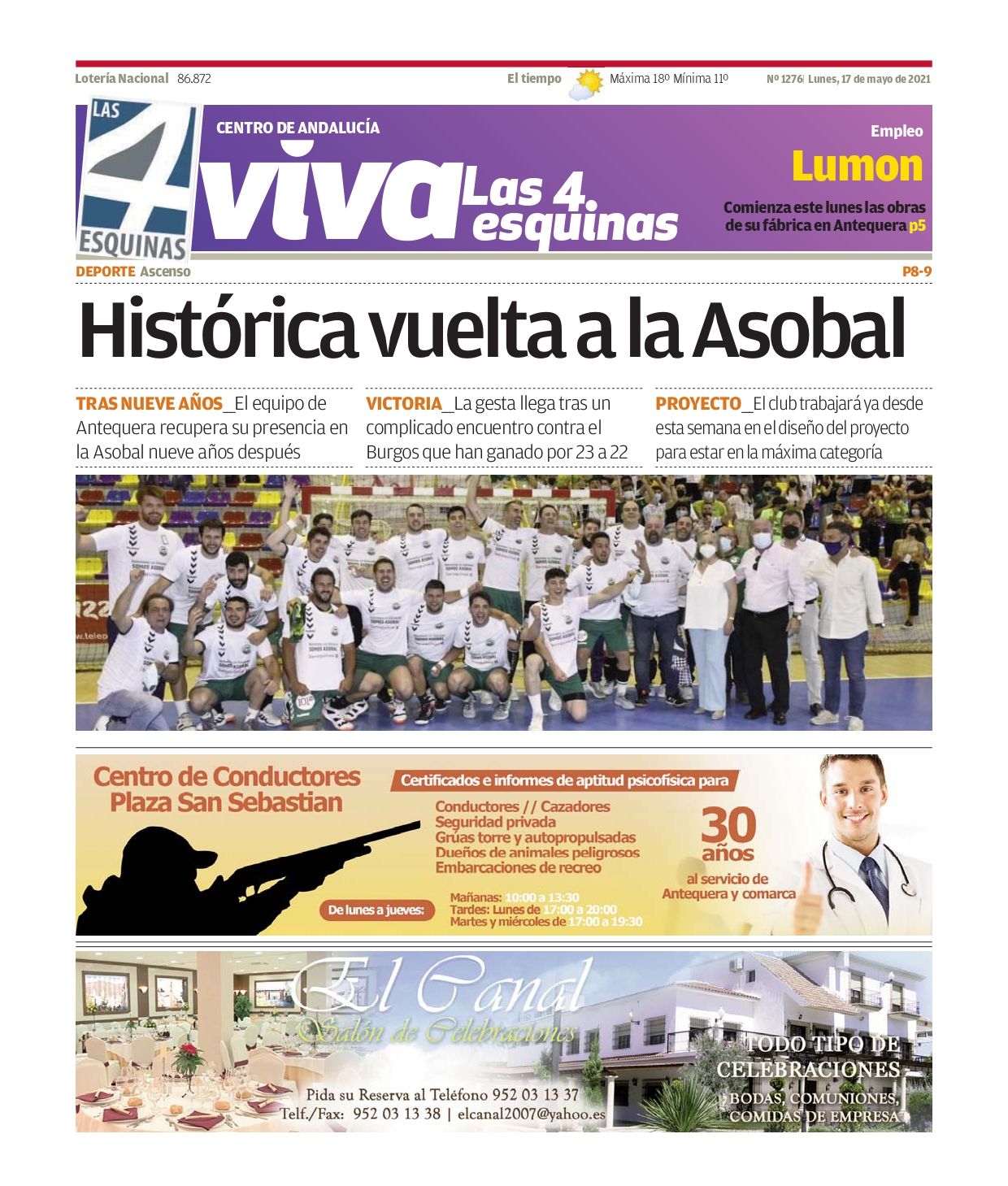 Actualidad|PublicacionesPeriódicos Periódico | VIVA Las 4 Esquinas 17 de mayo – Histórica vuelta a la Asobal Última actualización 14 de marzo de 2025 15:42 admin Compartir Compartir Pincha aquí para leer gratis nuestro periódico Comparte este artículo Facebook Copiar link Imprimir No hay comentarios Deja una respuesta Cancelar la respuestaTu dirección de correo electrónico no será publicada. Los campos obligatorios están marcados con *Comentario * Nombre * Correo electrónico * Web Guarda mi nombre, correo electrónico y web en este navegador para la próxima vez que comente. Últimas noticias Farmacias de Guardia en Antequera – Abril 2025 14 de marzo de 2025 Ese nadie 14 de marzo de 2025 Concluye la adecuación del camino de arroyo Cerezo en Villanueva del Rosario tras una inversión de 253.000 euros 14 de marzo de 2025 PSOE e IU solicitan al PP la adhesión de Archidona a la futura Mancomunidad de Municipios 14 de marzo de 2025 Las lluvias de marzo dejan 230 litros en Antequera y un consumo mínimo garantizado para 3 años 14 de marzo de 2025 Lo más leido Farmacias de Guardia en Antequera – Abril 2025 14 de marzo de 2025 Ese nadie 14 de marzo de 2025 Concluye la adecuación del camino de arroyo Cerezo en Villanueva del Rosario tras una inversión de 253.000 euros 14 de marzo de 2025 PSOE e IU solicitan al PP la adhesión de Archidona a la futura Mancomunidad de Municipios 14 de marzo de 2025 Las lluvias de marzo dejan 230 litros en Antequera y un consumo mínimo garantizado para 3 años 14 de marzo de 2025 Síguenos 304.9kMe gusta3.04MSeguir304.9kPin844.87MSeguir40.49MSuscribirse39.5kSeguir