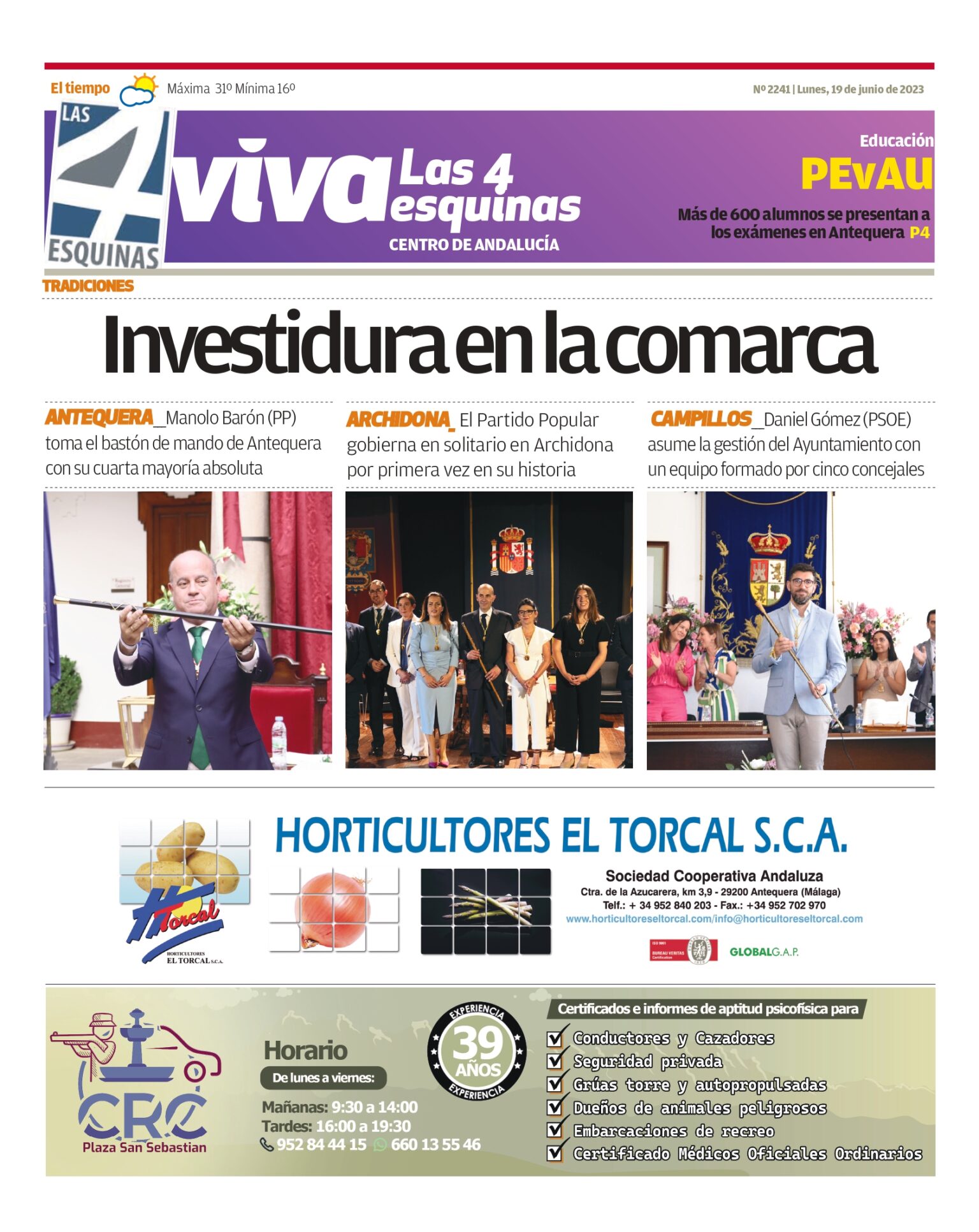Actualidad|PublicacionesPeriódicos Periódico | VIVA Las 4 Esquinas 19 junio – Investidura en la comarca Última actualización 14 de marzo de 2025 16:15 admin Compartir Compartir Pincha aquí para leer gratis nuestro periódico Comparte este artículo Facebook Copiar link Imprimir No hay comentarios Deja una respuesta Cancelar la respuestaTu dirección de correo electrónico no será publicada. Los campos obligatorios están marcados con *Comentario * Nombre * Correo electrónico * Web Guarda mi nombre, correo electrónico y web en este navegador para la próxima vez que comente. Últimas noticias Farmacias de Guardia en Antequera – Abril 2025 14 de marzo de 2025 Ese nadie 14 de marzo de 2025 Concluye la adecuación del camino de arroyo Cerezo en Villanueva del Rosario tras una inversión de 253.000 euros 14 de marzo de 2025 PSOE e IU solicitan al PP la adhesión de Archidona a la futura Mancomunidad de Municipios 14 de marzo de 2025 Las lluvias de marzo dejan 230 litros en Antequera y un consumo mínimo garantizado para 3 años 14 de marzo de 2025 Lo más leido Farmacias de Guardia en Antequera – Abril 2025 14 de marzo de 2025 Ese nadie 14 de marzo de 2025 Concluye la adecuación del camino de arroyo Cerezo en Villanueva del Rosario tras una inversión de 253.000 euros 14 de marzo de 2025 PSOE e IU solicitan al PP la adhesión de Archidona a la futura Mancomunidad de Municipios 14 de marzo de 2025 Las lluvias de marzo dejan 230 litros en Antequera y un consumo mínimo garantizado para 3 años 14 de marzo de 2025 Síguenos 304.9kMe gusta3.04MSeguir304.9kPin844.87MSeguir40.49MSuscribirse39.5kSeguir