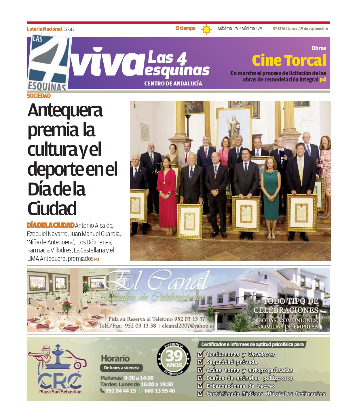 Periódico | VIVA Las 4 Esquinas 19 septiembre – Antequera premia la cultura y el deporte en el Día de la Ciudad