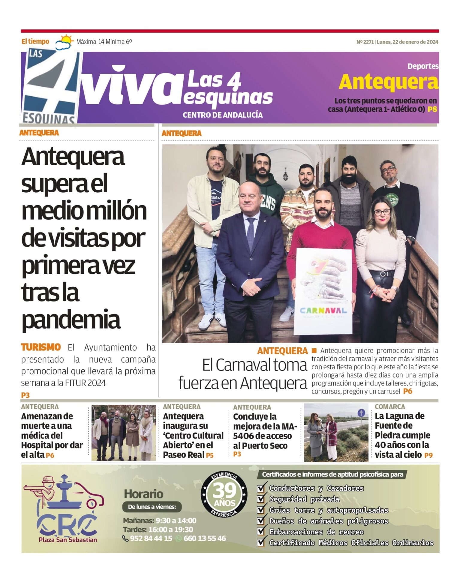 Periódico | VIVA Las 4 Esquinas 22 enero – Antequera supera el medio millón de visitas por primera vez tras la pandemia