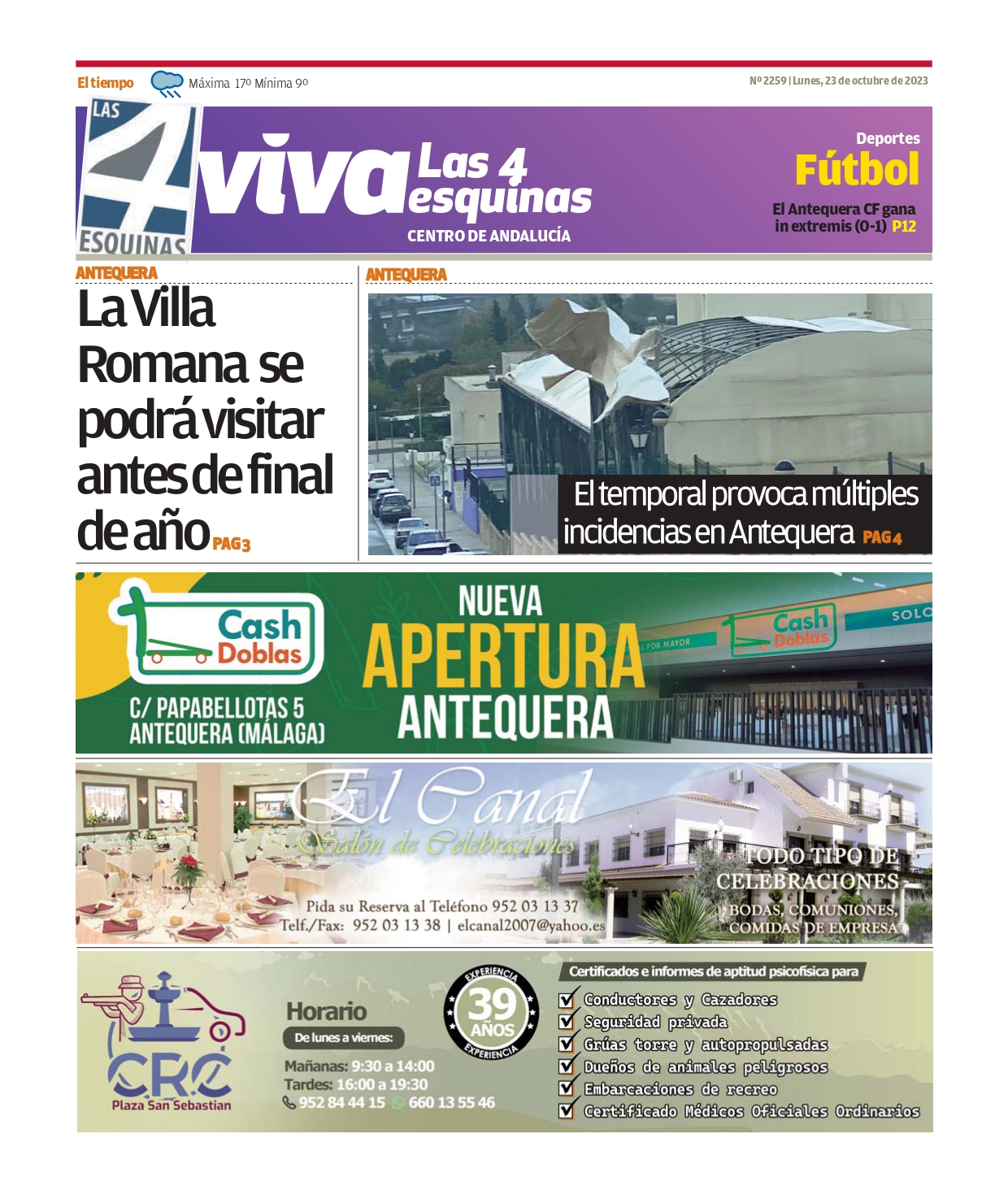 Periódico | VIVA Las 4 Esquinas 23 octubre – El Temporal provoca múltiples incidencias en Antequera