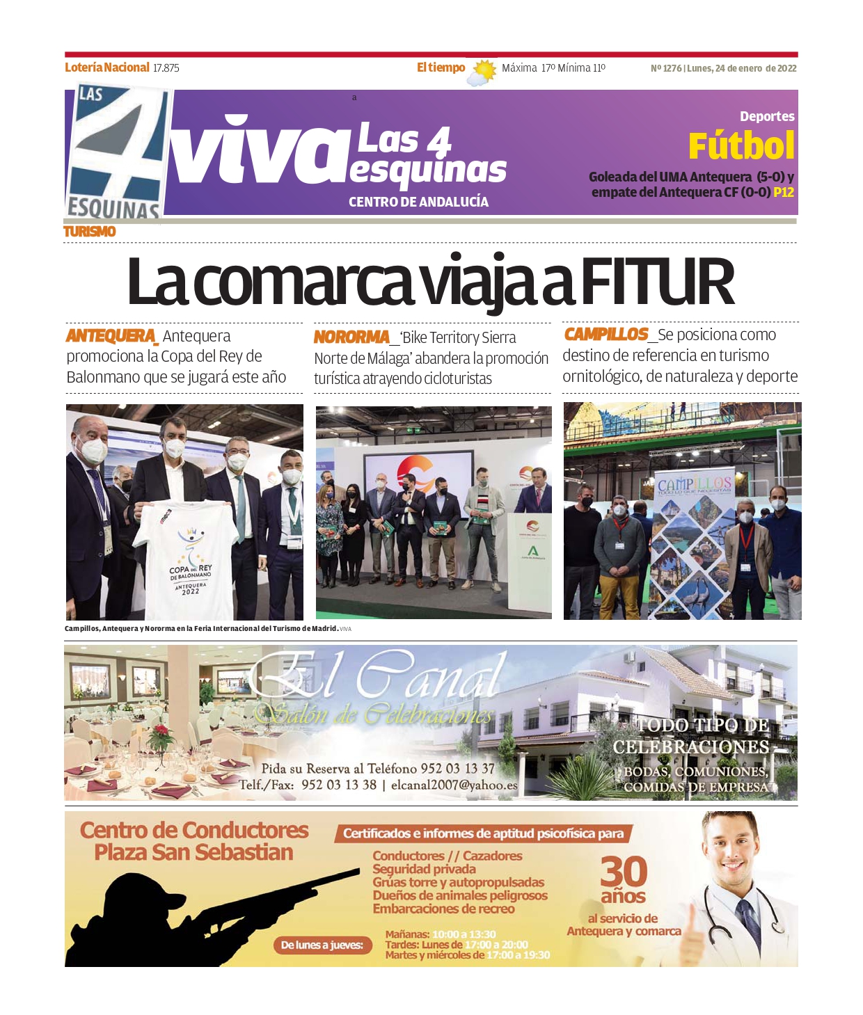 Actualidad|PublicacionesPeriódicos Periódico | VIVA Las 4 Esquinas 24 enero – La comarca viaja a FITUR Última actualización 14 de marzo de 2025 15:53 admin Compartir Compartir Pincha aquí para leer gratis nuestro periódico Comparte este artículo Facebook Copiar link Imprimir No hay comentarios Deja una respuesta Cancelar la respuestaTu dirección de correo electrónico no será publicada. Los campos obligatorios están marcados con *Comentario * Nombre * Correo electrónico * Web Guarda mi nombre, correo electrónico y web en este navegador para la próxima vez que comente. Últimas noticias Farmacias de Guardia en Antequera – Abril 2025 14 de marzo de 2025 Ese nadie 14 de marzo de 2025 Concluye la adecuación del camino de arroyo Cerezo en Villanueva del Rosario tras una inversión de 253.000 euros 14 de marzo de 2025 PSOE e IU solicitan al PP la adhesión de Archidona a la futura Mancomunidad de Municipios 14 de marzo de 2025 Las lluvias de marzo dejan 230 litros en Antequera y un consumo mínimo garantizado para 3 años 14 de marzo de 2025 Lo más leido Farmacias de Guardia en Antequera – Abril 2025 14 de marzo de 2025 Ese nadie 14 de marzo de 2025 Concluye la adecuación del camino de arroyo Cerezo en Villanueva del Rosario tras una inversión de 253.000 euros 14 de marzo de 2025 PSOE e IU solicitan al PP la adhesión de Archidona a la futura Mancomunidad de Municipios 14 de marzo de 2025 Las lluvias de marzo dejan 230 litros en Antequera y un consumo mínimo garantizado para 3 años 14 de marzo de 2025 Síguenos 304.9kMe gusta3.04MSeguir304.9kPin844.87MSeguir40.49MSuscribirse39.5kSeguir