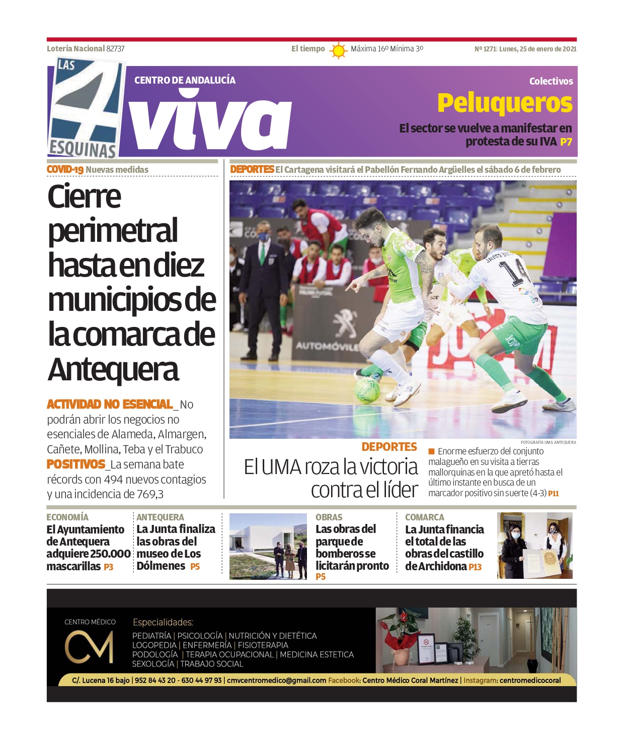 Periódico | VIVA Las 4 Esquinas 25 de enero – Cierre perimetral hasta en diez municipios de la comarca de Antequera