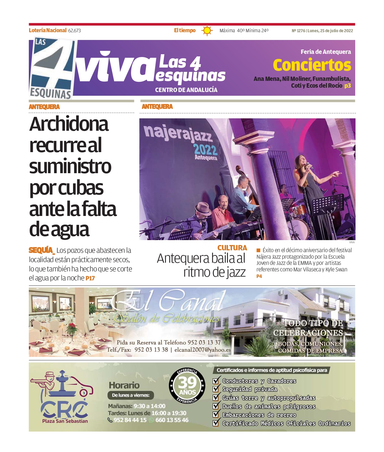 Periódico | VIVA Las 4 Esquinas 25 julio – Archidona recurre al suministro por cubas ante la falta de agua