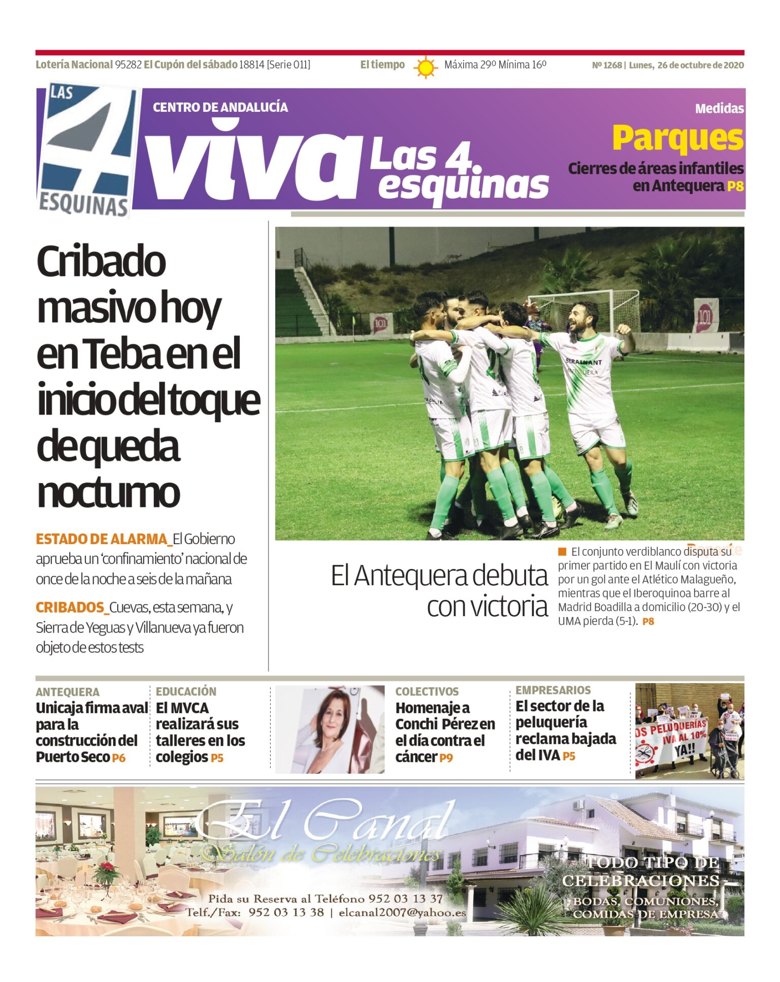 Periódico | VIVA Las 4 Esquinas 26 de octubre – Cribado masivo hoy en Teba en el inicio del toque de queda nocturno