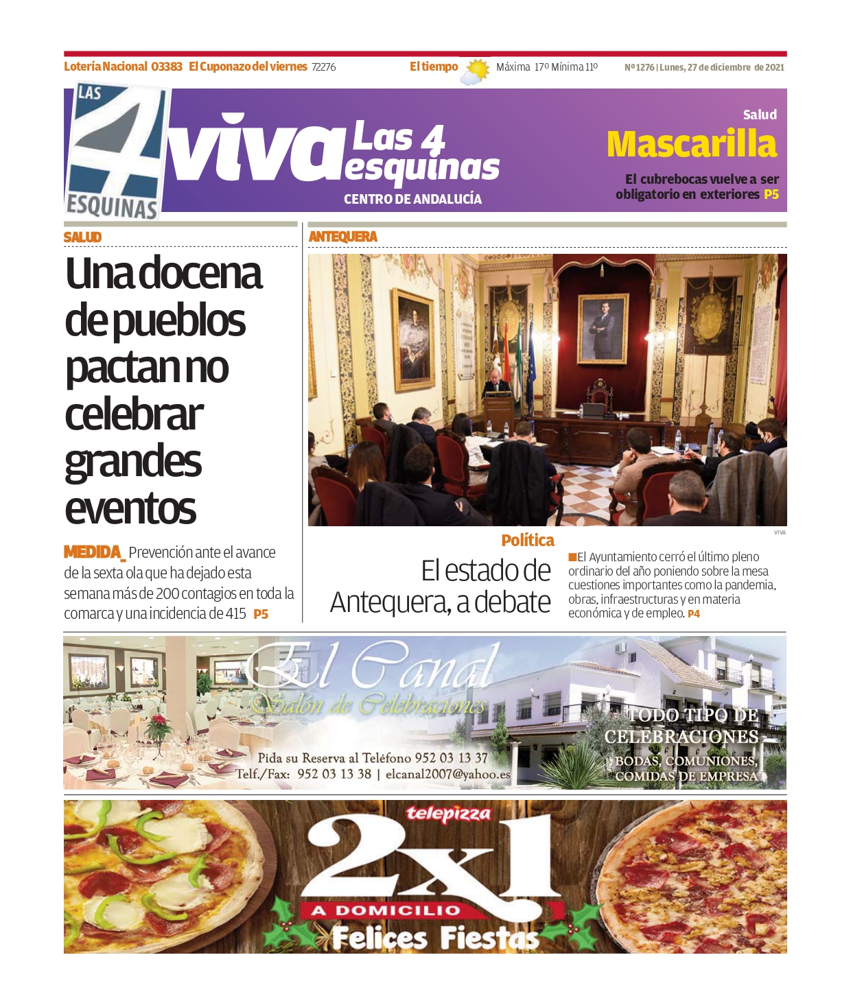 Periódico | VIVA Las 4 Esquinas 27 diciembre – Una docena de pueblos pactan no celebrar grandes eventos