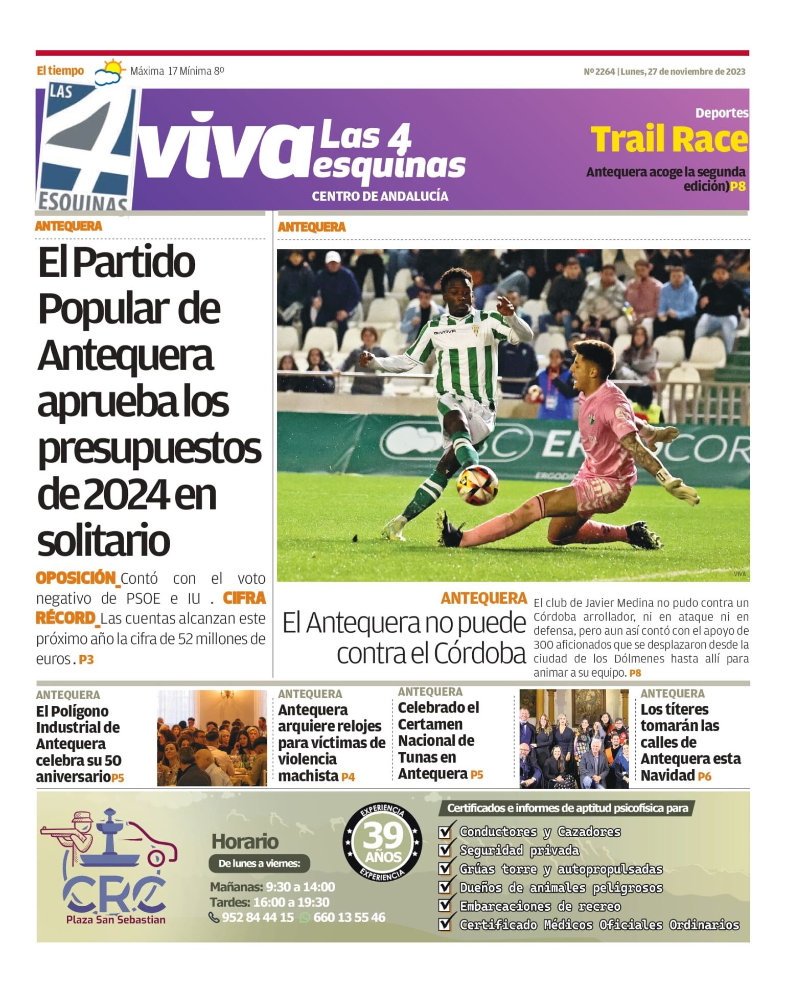 Periódico | VIVA Las 4 Esquinas 27 noviembre – El Partido Popular de Antequera aprueba los presupuestos de 2024 en solitario