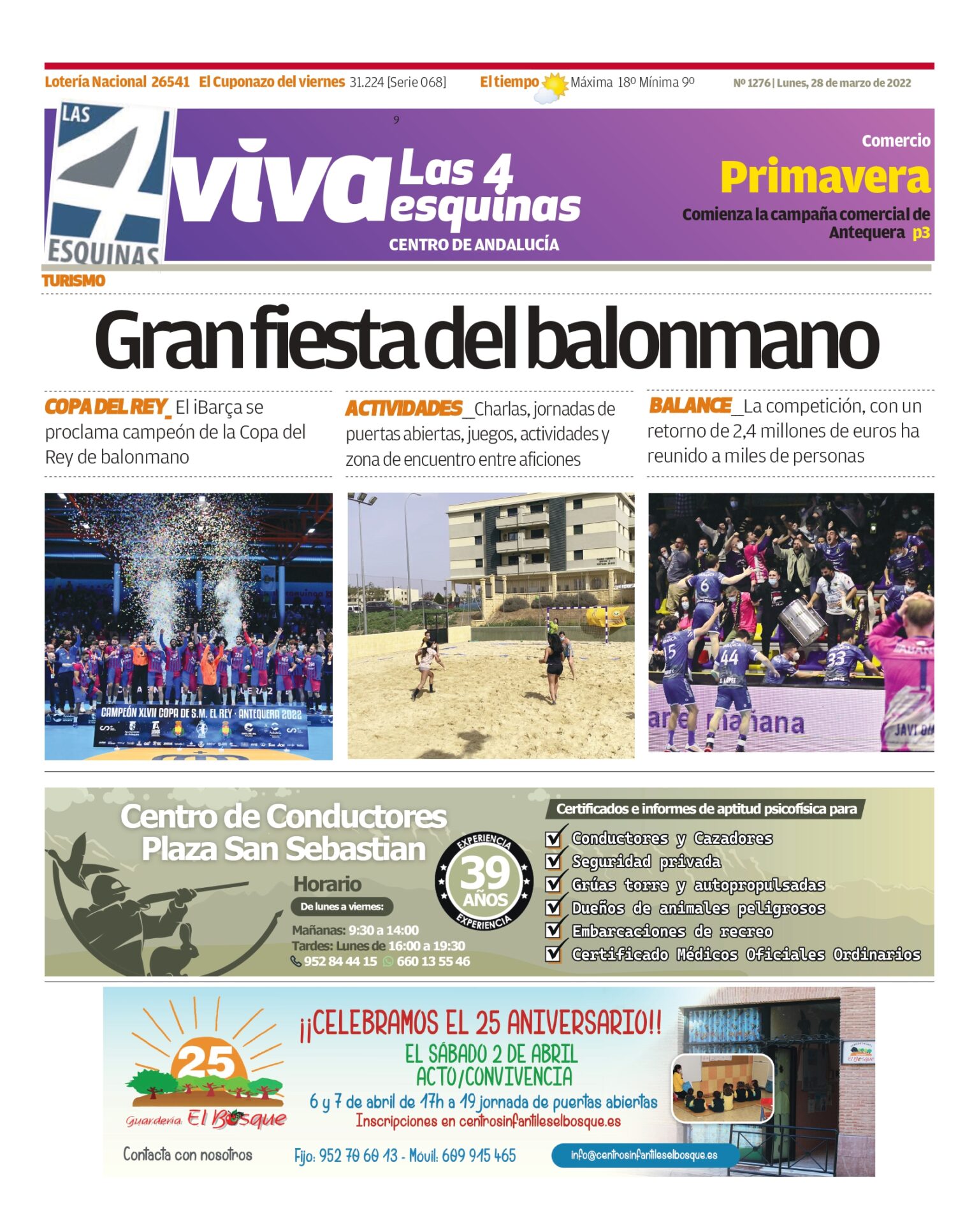 Actualidad|PublicacionesPeriódicos Periódico | VIVA Las 4 Esquinas 28 marzo – Gran fiesta del balonmano Última actualización 14 de marzo de 2025 15:55 admin Compartir Compartir Pincha aquí para leer gratis nuestro periódico Comparte este artículo Facebook Copiar link Imprimir No hay comentarios Deja una respuesta Cancelar la respuestaTu dirección de correo electrónico no será publicada. Los campos obligatorios están marcados con *Comentario * Nombre * Correo electrónico * Web Guarda mi nombre, correo electrónico y web en este navegador para la próxima vez que comente. Últimas noticias Farmacias de Guardia en Antequera – Abril 2025 14 de marzo de 2025 Ese nadie 14 de marzo de 2025 Concluye la adecuación del camino de arroyo Cerezo en Villanueva del Rosario tras una inversión de 253.000 euros 14 de marzo de 2025 PSOE e IU solicitan al PP la adhesión de Archidona a la futura Mancomunidad de Municipios 14 de marzo de 2025 Las lluvias de marzo dejan 230 litros en Antequera y un consumo mínimo garantizado para 3 años 14 de marzo de 2025 Lo más leido Farmacias de Guardia en Antequera – Abril 2025 14 de marzo de 2025 Ese nadie 14 de marzo de 2025 Concluye la adecuación del camino de arroyo Cerezo en Villanueva del Rosario tras una inversión de 253.000 euros 14 de marzo de 2025 PSOE e IU solicitan al PP la adhesión de Archidona a la futura Mancomunidad de Municipios 14 de marzo de 2025 Las lluvias de marzo dejan 230 litros en Antequera y un consumo mínimo garantizado para 3 años 14 de marzo de 2025 Síguenos 304.9kMe gusta3.04MSeguir304.9kPin844.87MSeguir40.49MSuscribirse39.5kSeguir
