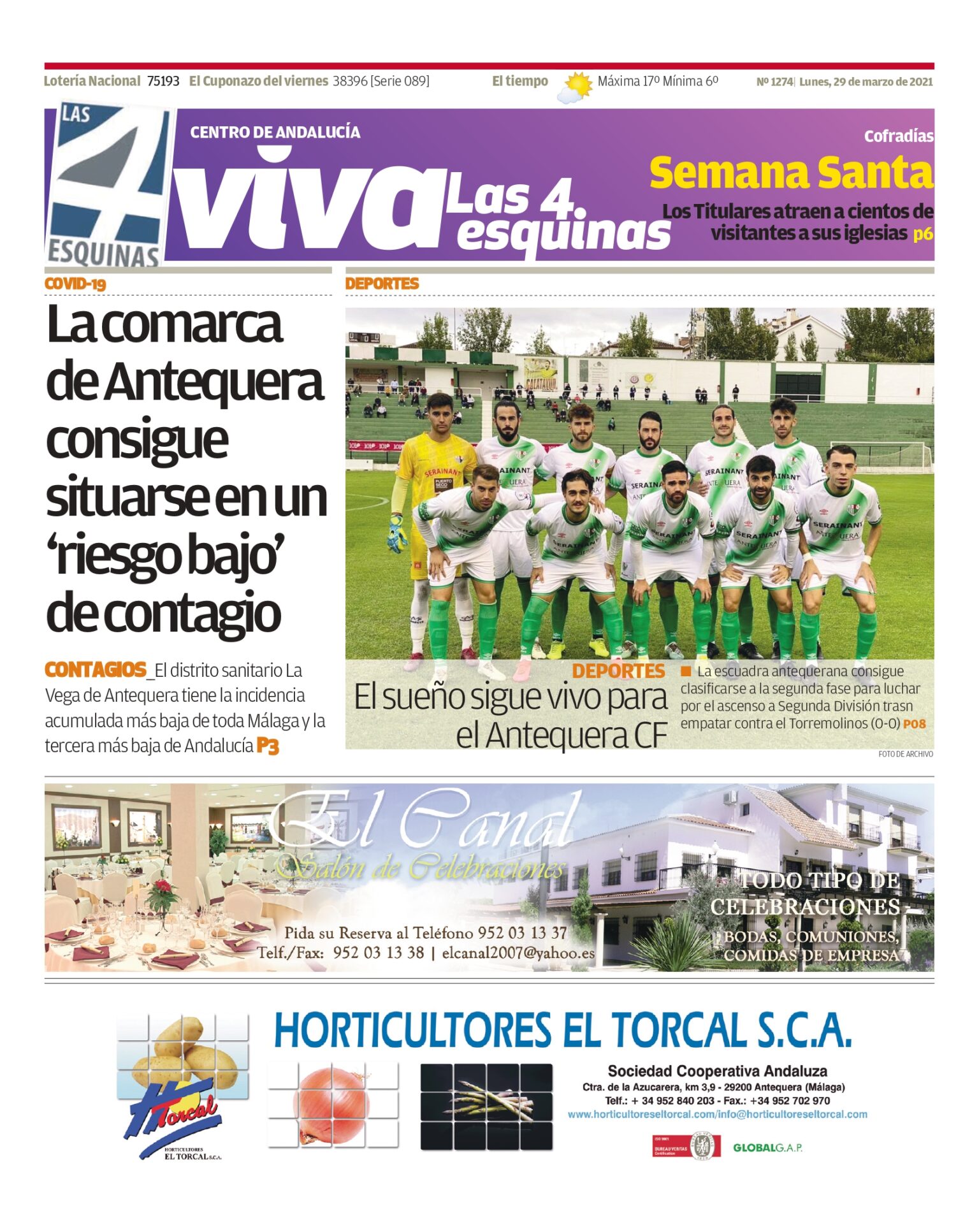 Periódico | VIVA Las 4 Esquinas 29 de marzo – La comarca de Antequera consigue situarse en un ‘riesgo bajo’ de contagio