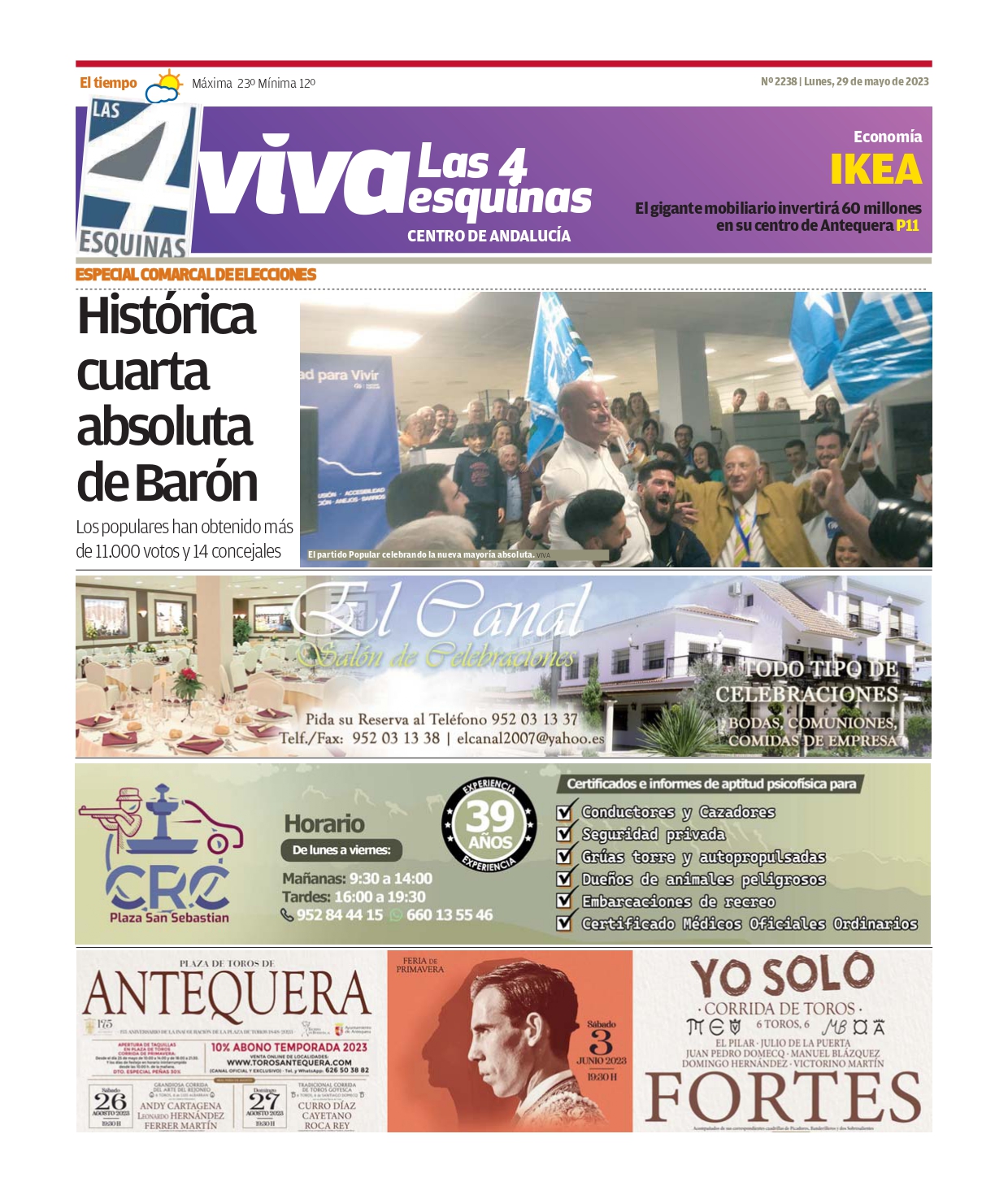 Actualidad|PublicacionesPeriódicos Periódico | VIVA Las 4 Esquinas 29 mayo – Histórica cuarta absoluta de Barón Última actualización 14 de marzo de 2025 16:14 admin Compartir Compartir Pincha aquí para leer gratis nuestro periódico Comparte este artículo Facebook Copiar link Imprimir No hay comentarios Deja una respuesta Cancelar la respuestaTu dirección de correo electrónico no será publicada. Los campos obligatorios están marcados con *Comentario * Nombre * Correo electrónico * Web Guarda mi nombre, correo electrónico y web en este navegador para la próxima vez que comente. Últimas noticias Farmacias de Guardia en Antequera – Abril 2025 14 de marzo de 2025 Ese nadie 14 de marzo de 2025 Concluye la adecuación del camino de arroyo Cerezo en Villanueva del Rosario tras una inversión de 253.000 euros 14 de marzo de 2025 PSOE e IU solicitan al PP la adhesión de Archidona a la futura Mancomunidad de Municipios 14 de marzo de 2025 Las lluvias de marzo dejan 230 litros en Antequera y un consumo mínimo garantizado para 3 años 14 de marzo de 2025 Lo más leido Farmacias de Guardia en Antequera – Abril 2025 14 de marzo de 2025 Ese nadie 14 de marzo de 2025 Concluye la adecuación del camino de arroyo Cerezo en Villanueva del Rosario tras una inversión de 253.000 euros 14 de marzo de 2025 PSOE e IU solicitan al PP la adhesión de Archidona a la futura Mancomunidad de Municipios 14 de marzo de 2025 Las lluvias de marzo dejan 230 litros en Antequera y un consumo mínimo garantizado para 3 años 14 de marzo de 2025 Síguenos 304.9kMe gusta3.04MSeguir304.9kPin844.87MSeguir40.49MSuscribirse39.5kSeguir