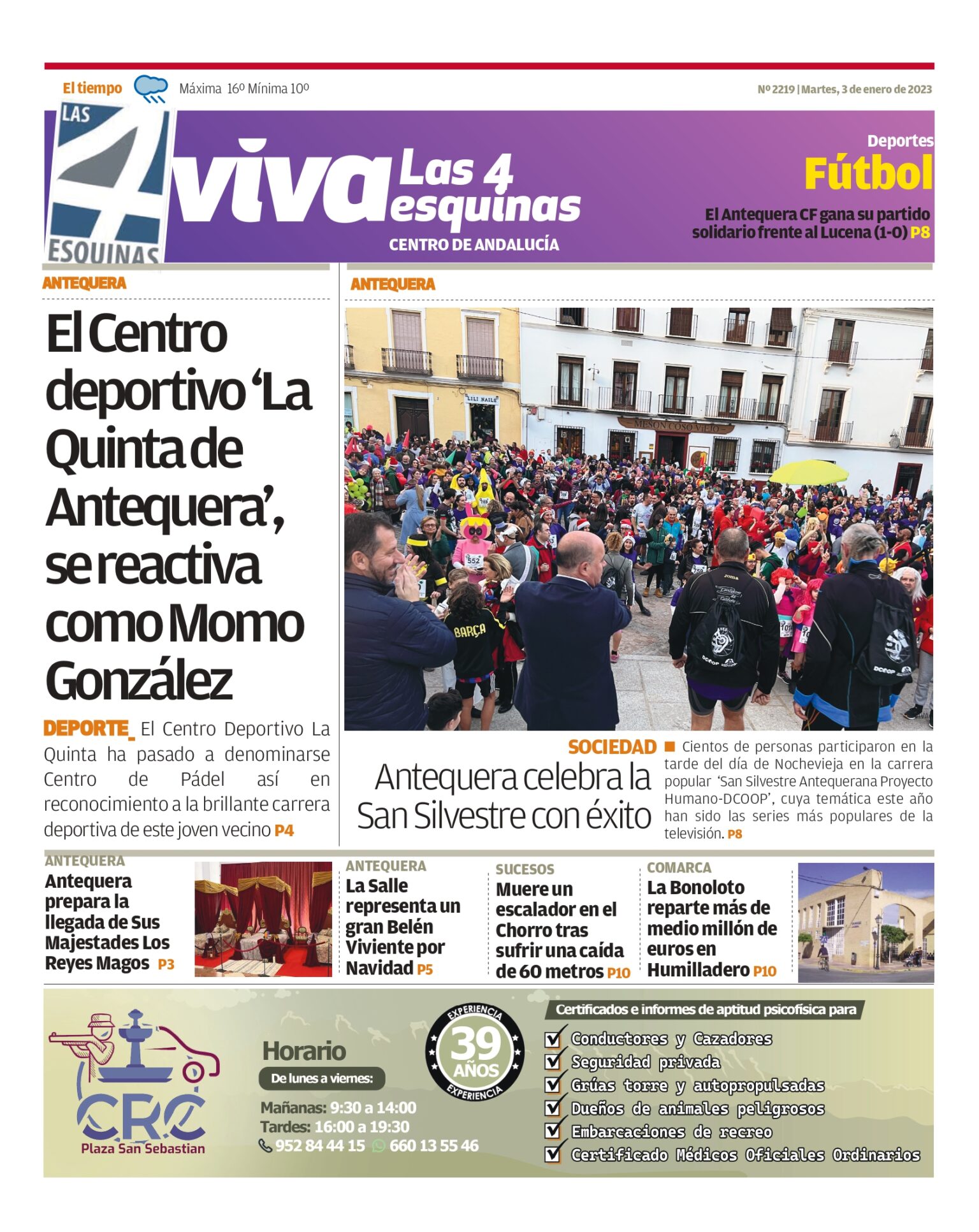 Periódico | VIVA Las 4 Esquinas 3 enero – El Centro deportivo «La Quinta de Antequera», se reactiva como Momo González