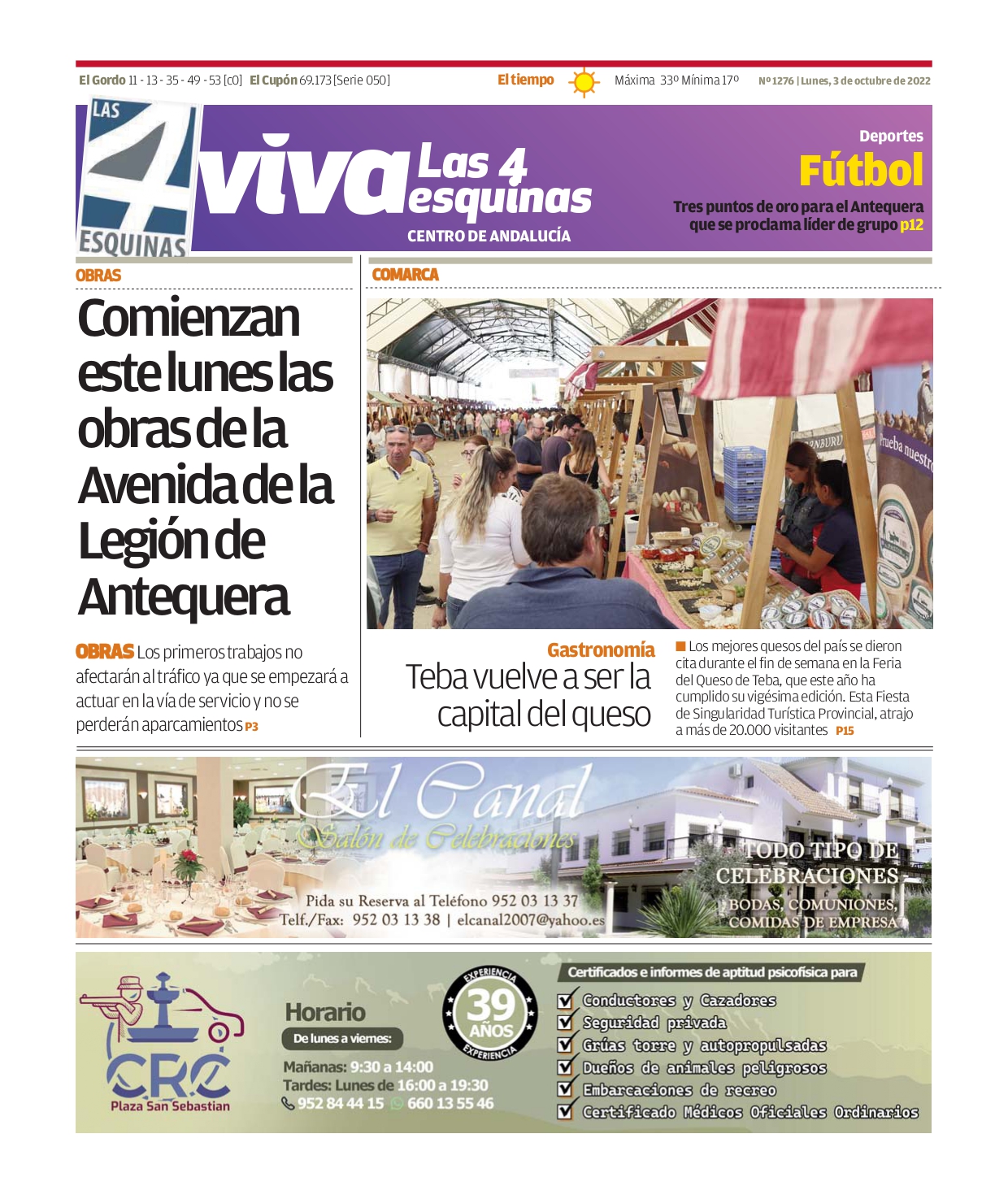 Periódico | VIVA Las 4 Esquinas 3 octubre – Comienzan este lunes las obras de la Avenida de la Legión de Antequera