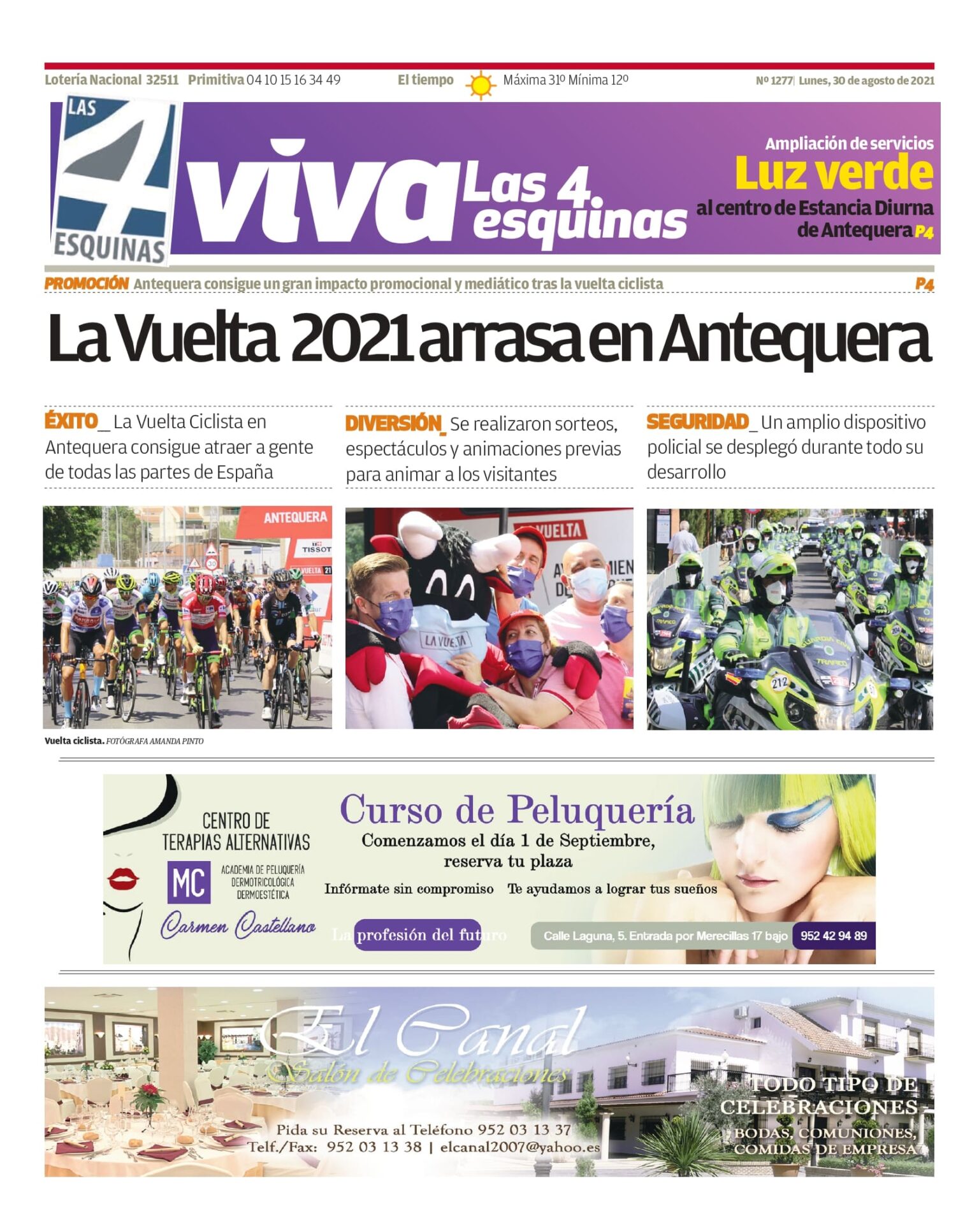 Actualidad|PublicacionesPeriódicos Periódico | VIVA Las 4 Esquinas 30 de agosto – La Vuelta 2021 arrasa en Antequera Última actualización 14 de marzo de 2025 15:46 admin Compartir Compartir Pincha aquí para leer gratis nuestro periódico Comparte este artículo Facebook Copiar link Imprimir No hay comentarios Deja una respuesta Cancelar la respuestaTu dirección de correo electrónico no será publicada. Los campos obligatorios están marcados con *Comentario * Nombre * Correo electrónico * Web Guarda mi nombre, correo electrónico y web en este navegador para la próxima vez que comente. Últimas noticias Farmacias de Guardia en Antequera – Abril 2025 14 de marzo de 2025 Ese nadie 14 de marzo de 2025 Concluye la adecuación del camino de arroyo Cerezo en Villanueva del Rosario tras una inversión de 253.000 euros 14 de marzo de 2025 PSOE e IU solicitan al PP la adhesión de Archidona a la futura Mancomunidad de Municipios 14 de marzo de 2025 Las lluvias de marzo dejan 230 litros en Antequera y un consumo mínimo garantizado para 3 años 14 de marzo de 2025 Lo más leido Farmacias de Guardia en Antequera – Abril 2025 14 de marzo de 2025 Ese nadie 14 de marzo de 2025 Concluye la adecuación del camino de arroyo Cerezo en Villanueva del Rosario tras una inversión de 253.000 euros 14 de marzo de 2025 PSOE e IU solicitan al PP la adhesión de Archidona a la futura Mancomunidad de Municipios 14 de marzo de 2025 Las lluvias de marzo dejan 230 litros en Antequera y un consumo mínimo garantizado para 3 años 14 de marzo de 2025 Síguenos 304.9kMe gusta3.04MSeguir304.9kPin844.87MSeguir40.49MSuscribirse39.5kSeguir