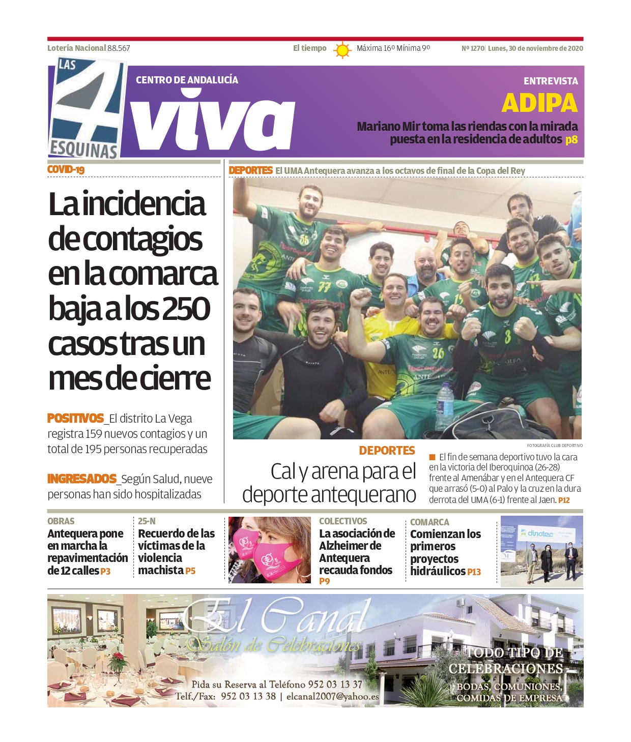 Periódico | VIVA Las 4 Esquinas 30 de noviembre – La incidencia de contagios en la comarca baja a los 250 casos tras un mes de cierre