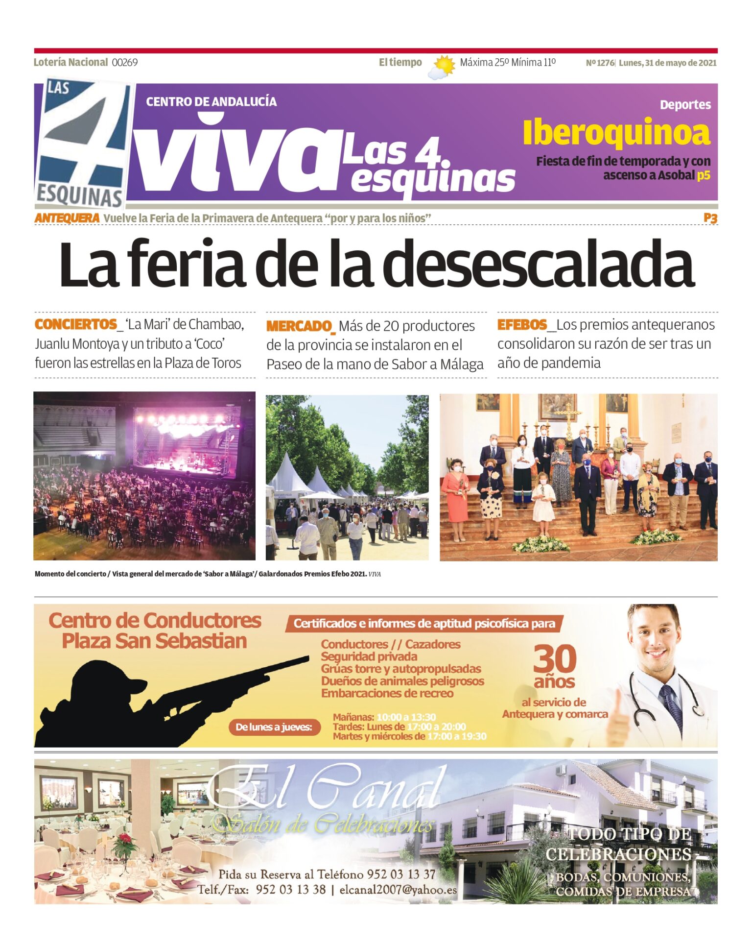 Actualidad|PublicacionesPeriódicos Periódico | VIVA Las 4 Esquinas 31 de mayo – La feria de la desescalada Última actualización 14 de marzo de 2025 15:43 admin Compartir Compartir Pincha aquí para leer gratis nuestro periódico Comparte este artículo Facebook Copiar link Imprimir No hay comentarios Deja una respuesta Cancelar la respuestaTu dirección de correo electrónico no será publicada. Los campos obligatorios están marcados con *Comentario * Nombre * Correo electrónico * Web Guarda mi nombre, correo electrónico y web en este navegador para la próxima vez que comente. Últimas noticias Farmacias de Guardia en Antequera – Abril 2025 14 de marzo de 2025 Ese nadie 14 de marzo de 2025 Concluye la adecuación del camino de arroyo Cerezo en Villanueva del Rosario tras una inversión de 253.000 euros 14 de marzo de 2025 PSOE e IU solicitan al PP la adhesión de Archidona a la futura Mancomunidad de Municipios 14 de marzo de 2025 Las lluvias de marzo dejan 230 litros en Antequera y un consumo mínimo garantizado para 3 años 14 de marzo de 2025 Lo más leido Farmacias de Guardia en Antequera – Abril 2025 14 de marzo de 2025 Ese nadie 14 de marzo de 2025 Concluye la adecuación del camino de arroyo Cerezo en Villanueva del Rosario tras una inversión de 253.000 euros 14 de marzo de 2025 PSOE e IU solicitan al PP la adhesión de Archidona a la futura Mancomunidad de Municipios 14 de marzo de 2025 Las lluvias de marzo dejan 230 litros en Antequera y un consumo mínimo garantizado para 3 años 14 de marzo de 2025 Síguenos 304.9kMe gusta3.04MSeguir304.9kPin844.87MSeguir40.49MSuscribirse39.5kSeguir