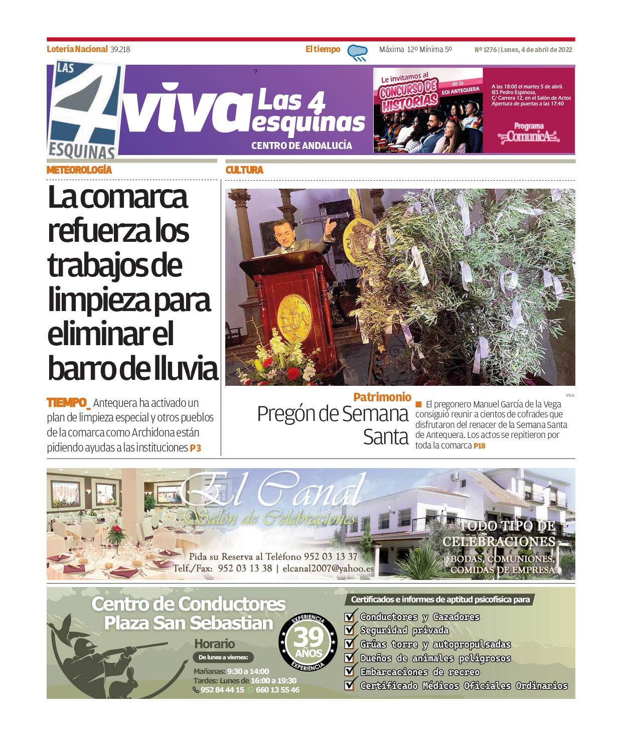 Periódico | VIVA Las 4 Esquinas 15 de marzo – La tasa de incidencia continúa bajando en la Comarca de Antequera