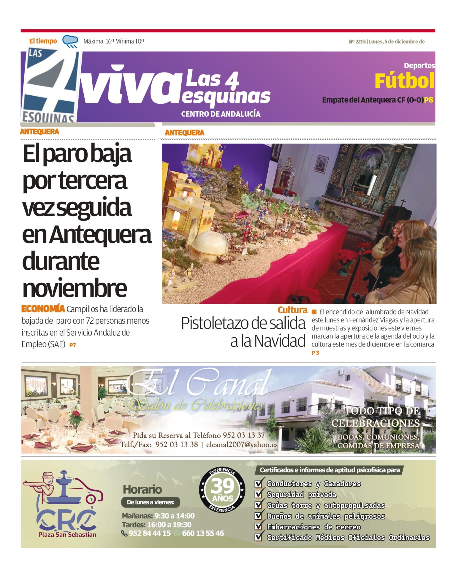 Periódico | VIVA Las 4 Esquinas 5 diciembre – El paro baja por tercera vez seguida en Antequera durante noviembre