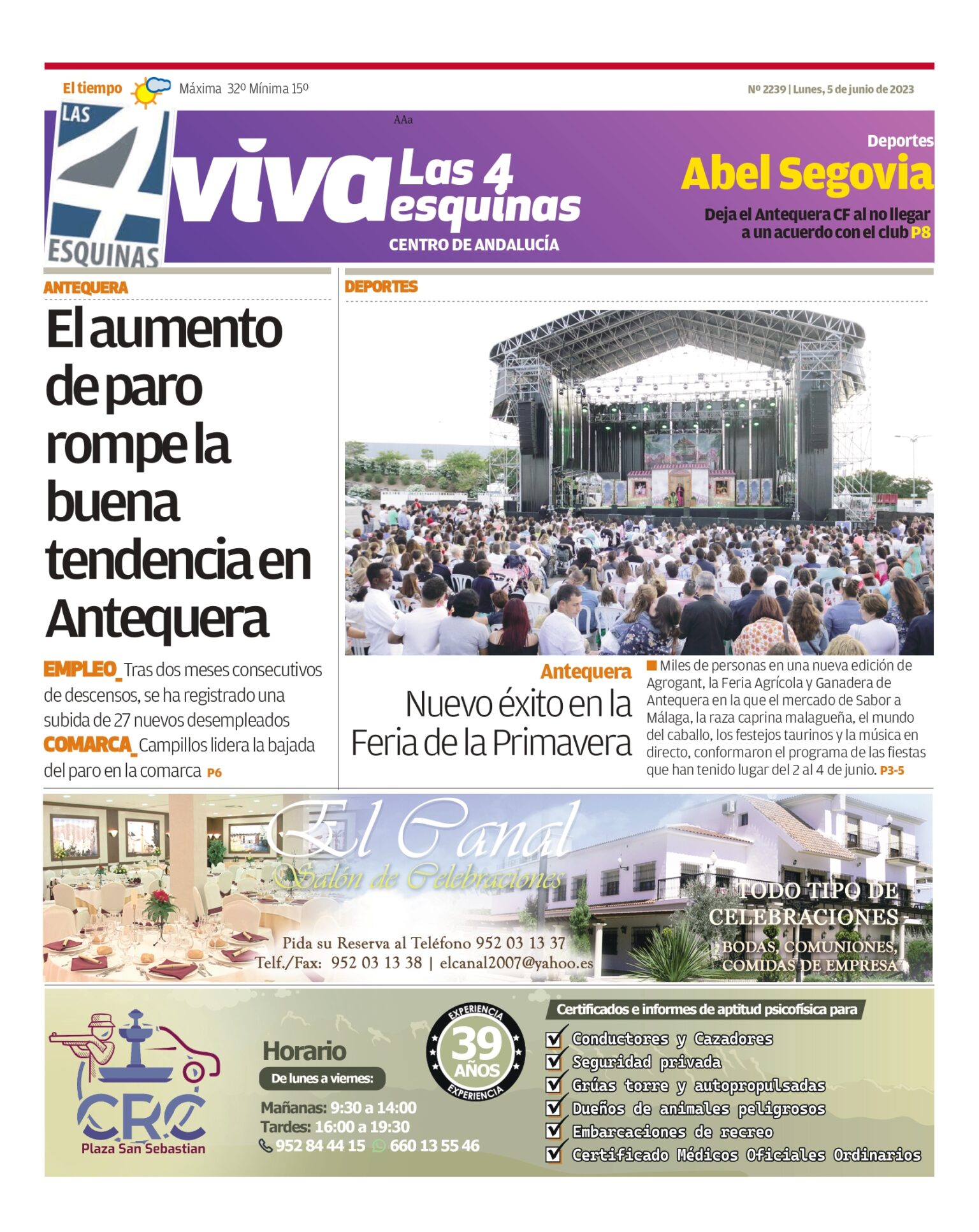 Periódico | VIVA Las 4 Esquinas 5 junio – El aumento de paro rompe la buena tendencia en Antequera