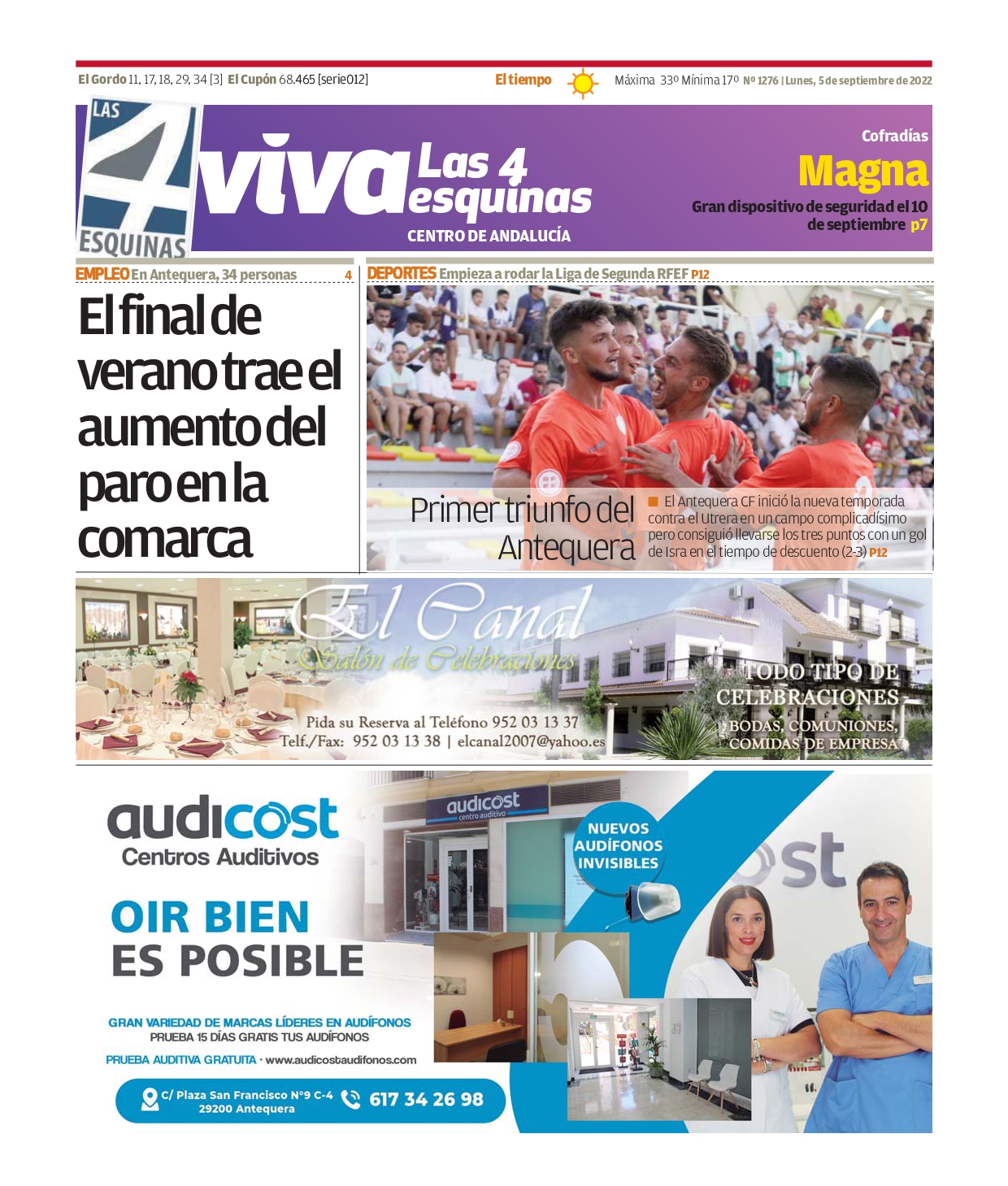 Actualidad|PublicacionesPeriódicos Periódico | VIVA Las 4 Esquinas 5 septiembre – El final de verano trae el aumento del paro en la comarca Última actualización 14 de marzo de 2025 16:02 admin Compartir Compartir Pincha aquí para leer gratis nuestro periódico Comparte este artículo Facebook Copiar link Imprimir No hay comentarios Deja una respuesta Cancelar la respuestaTu dirección de correo electrónico no será publicada. Los campos obligatorios están marcados con *Comentario * Nombre * Correo electrónico * Web Guarda mi nombre, correo electrónico y web en este navegador para la próxima vez que comente. Últimas noticias Farmacias de Guardia en Antequera – Abril 2025 14 de marzo de 2025 Ese nadie 14 de marzo de 2025 Concluye la adecuación del camino de arroyo Cerezo en Villanueva del Rosario tras una inversión de 253.000 euros 14 de marzo de 2025 PSOE e IU solicitan al PP la adhesión de Archidona a la futura Mancomunidad de Municipios 14 de marzo de 2025 Las lluvias de marzo dejan 230 litros en Antequera y un consumo mínimo garantizado para 3 años 14 de marzo de 2025 Lo más leido Farmacias de Guardia en Antequera – Abril 2025 14 de marzo de 2025 Ese nadie 14 de marzo de 2025 Concluye la adecuación del camino de arroyo Cerezo en Villanueva del Rosario tras una inversión de 253.000 euros 14 de marzo de 2025 PSOE e IU solicitan al PP la adhesión de Archidona a la futura Mancomunidad de Municipios 14 de marzo de 2025 Las lluvias de marzo dejan 230 litros en Antequera y un consumo mínimo garantizado para 3 años 14 de marzo de 2025 Síguenos 304.9kMe gusta3.04MSeguir304.9kPin844.87MSeguir40.49MSuscribirse39.5kSeguir