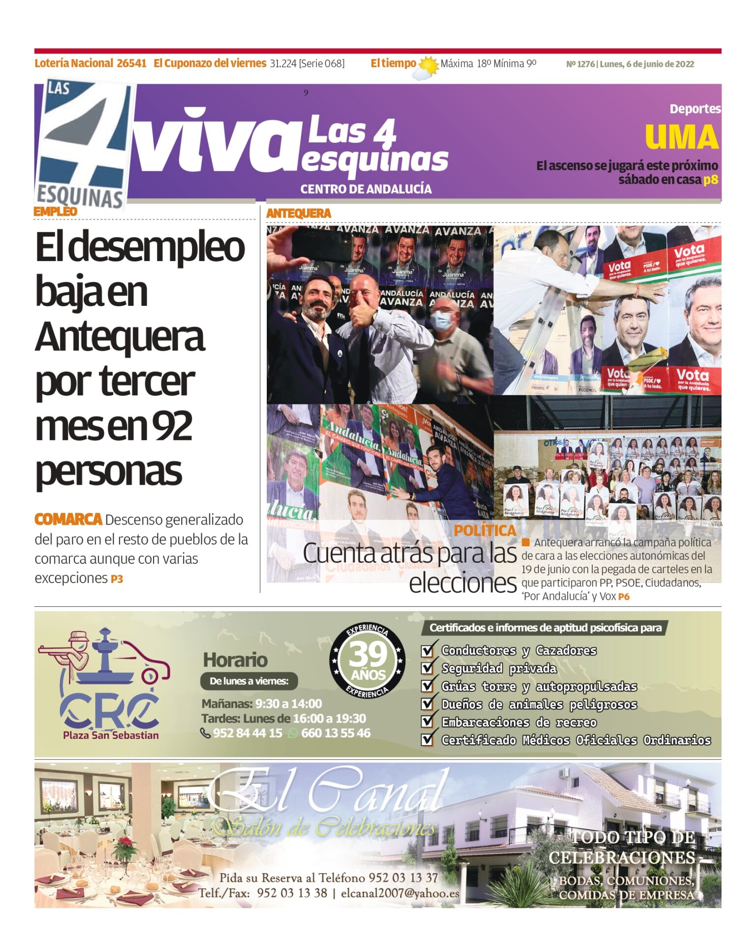 Periódico | VIVA Las 4 Esquinas 6 junio – El desempleo baja en Antequera por tercer mes en 92 personas