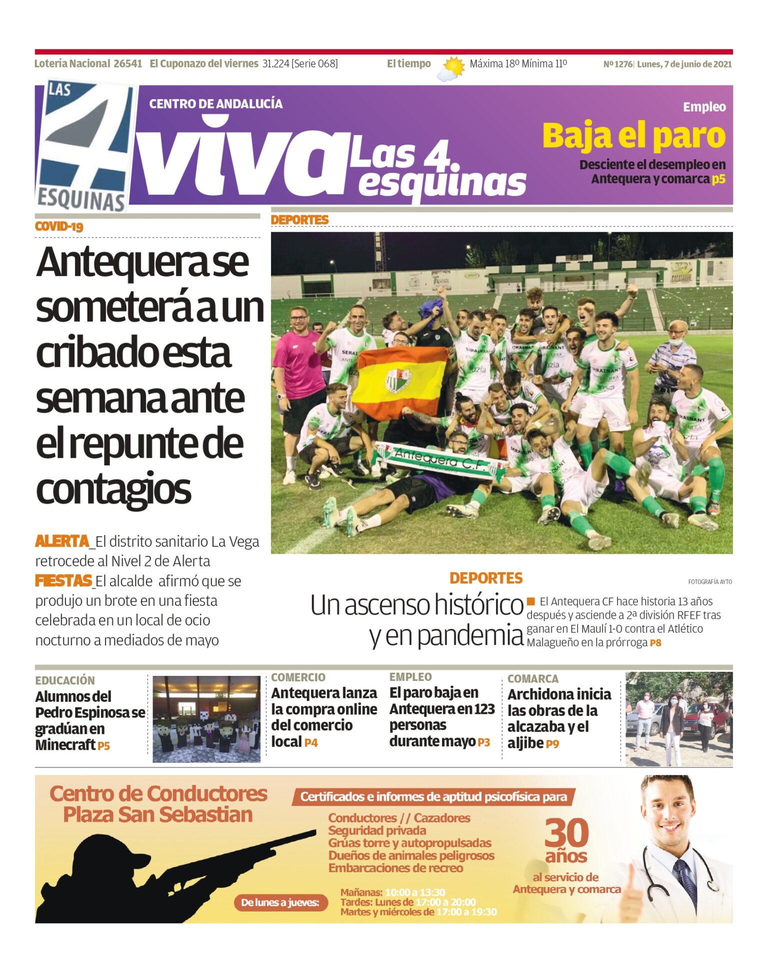 Periódico | VIVA Las 4 Esquinas 7 de junio – Antequera se someterá a un cribado esta semana ante el repunte de contagios