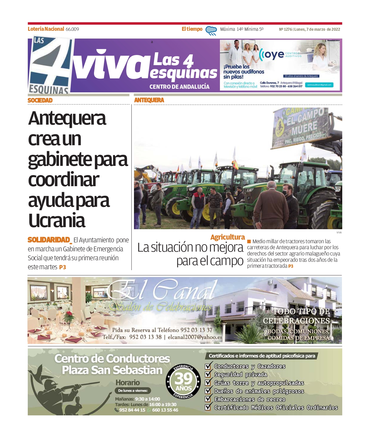 Periódico | VIVA Las 4 Esquinas 7 marzo – Antequera crea un gabinete para coordinar ayuda para Ucrania