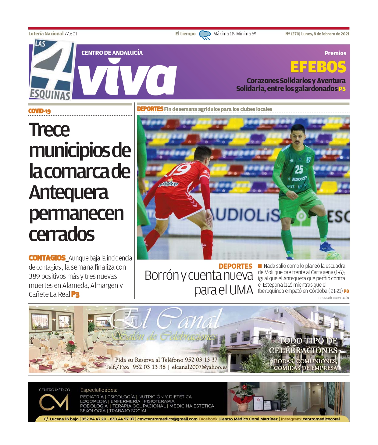 Periódico | VIVA Las 4 Esquinas 8 de febrero – Trece municipios de la comarca de Antequera permanecen cerrados