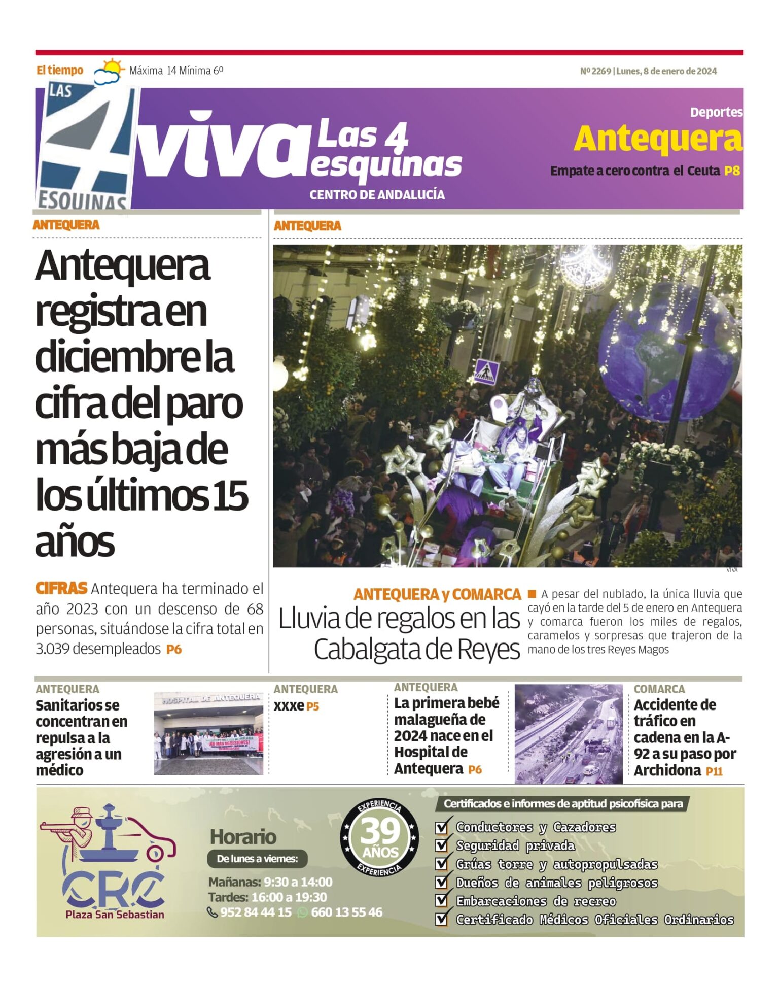 Periódico | VIVA Las 4 Esquinas 8 enero – Antequera registra en diciembre la cifra del paro más baja de los últimos 15 años