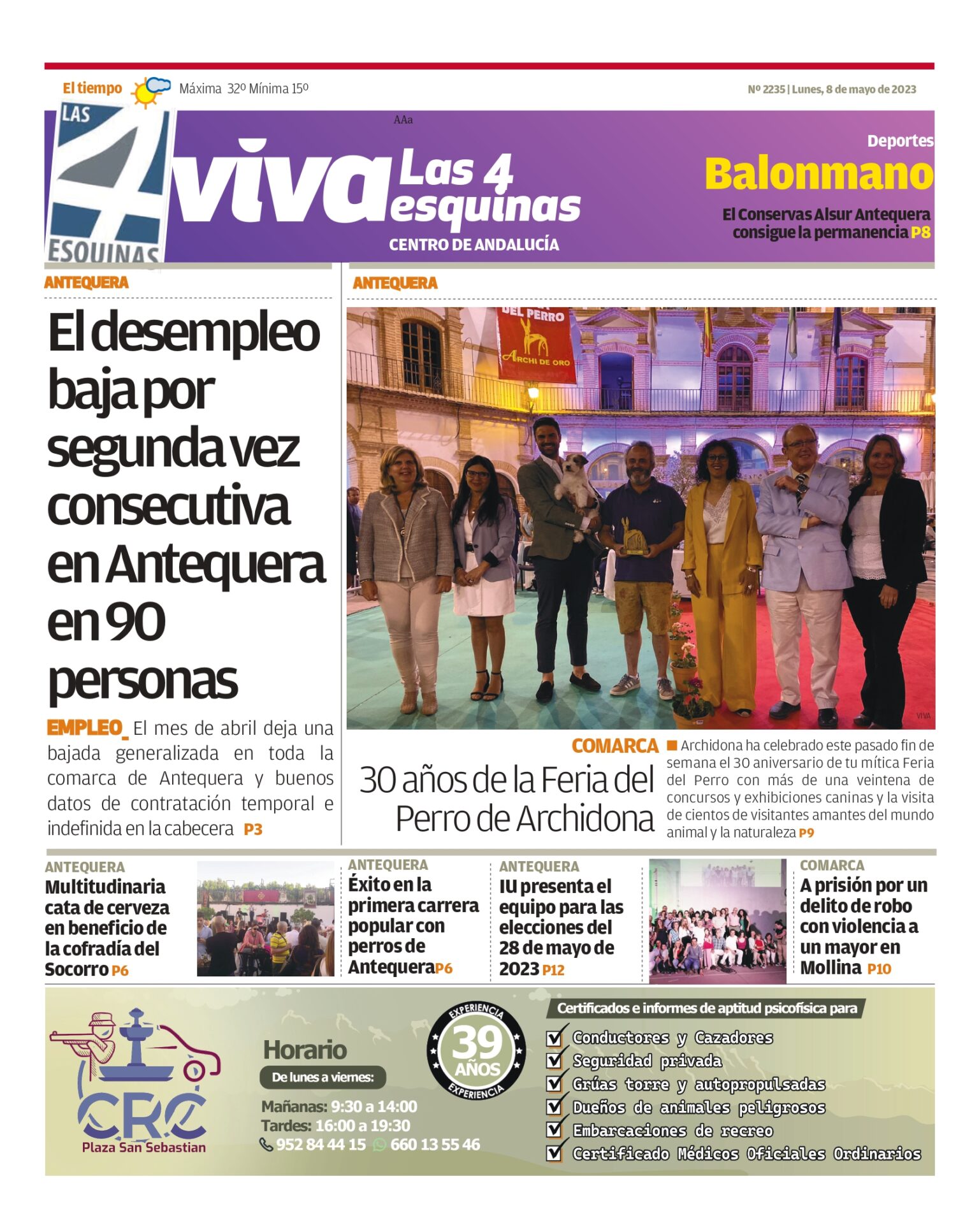 Periódico | VIVA Las 4 Esquinas 8 mayo – El desempleo baja por segunda vez consecutiva en Antequera en 90 personas