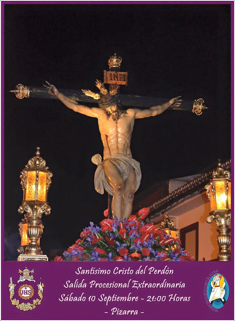 La Cofradía de Nuestro Padre Jesús Nazareno del Dulce Nombre y Santísimo Cristo del Perdón de Pizarra informa de la Salida Extraordinaria del Santísimo Cristo del Perdón este próximo Sábado, 10 de Septiembre a las 21.00 horas. En conmemoración, de la primera salida procesional en 1966, y bajo el marco excepcional del año de la Misericordia.