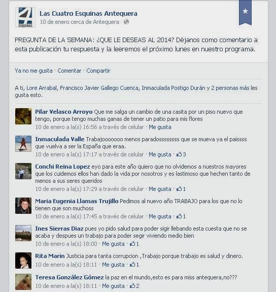Inmaculada Postigo Durán: Yo le pido salud para toda la gente que quiero y en especial para la pequeña de la casa. También pido que la felicidad colme los días de todos nosotros. Y que el 2014 este lleno de buenos momentos que pasen al recuerdo de los míos!