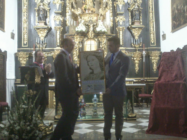 Tras desvelar el cartel el autor de la obra y hermano mayor de la Hermandad, Rafael Espinosa ha tratado de la técnica usada para el lienzo, siendo sanguina y carboncillo, que retratan un primer plano de la Santa Patrona de Antequera.